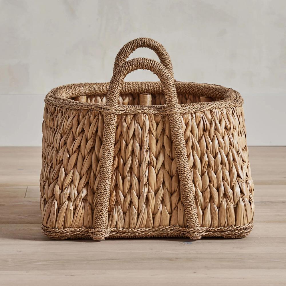 • Tara Coastal Beach Natural Handwoven Rattan Euro Market Basket|Kathy Kuo Home