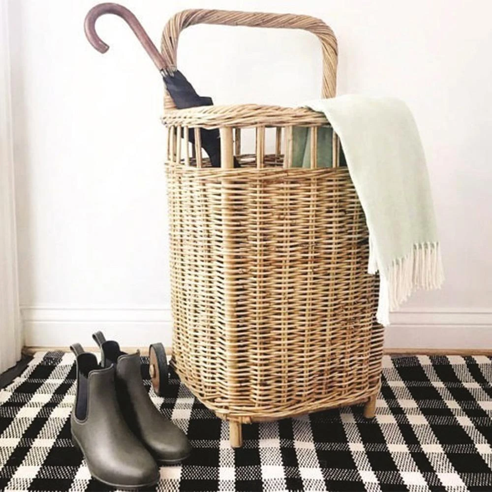 Tara Coastal Beach Natural Handwoven Rattan Mud Room Floor Basket