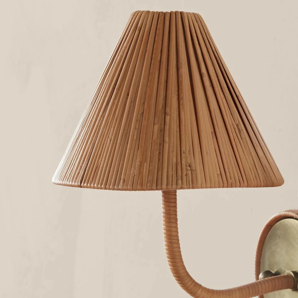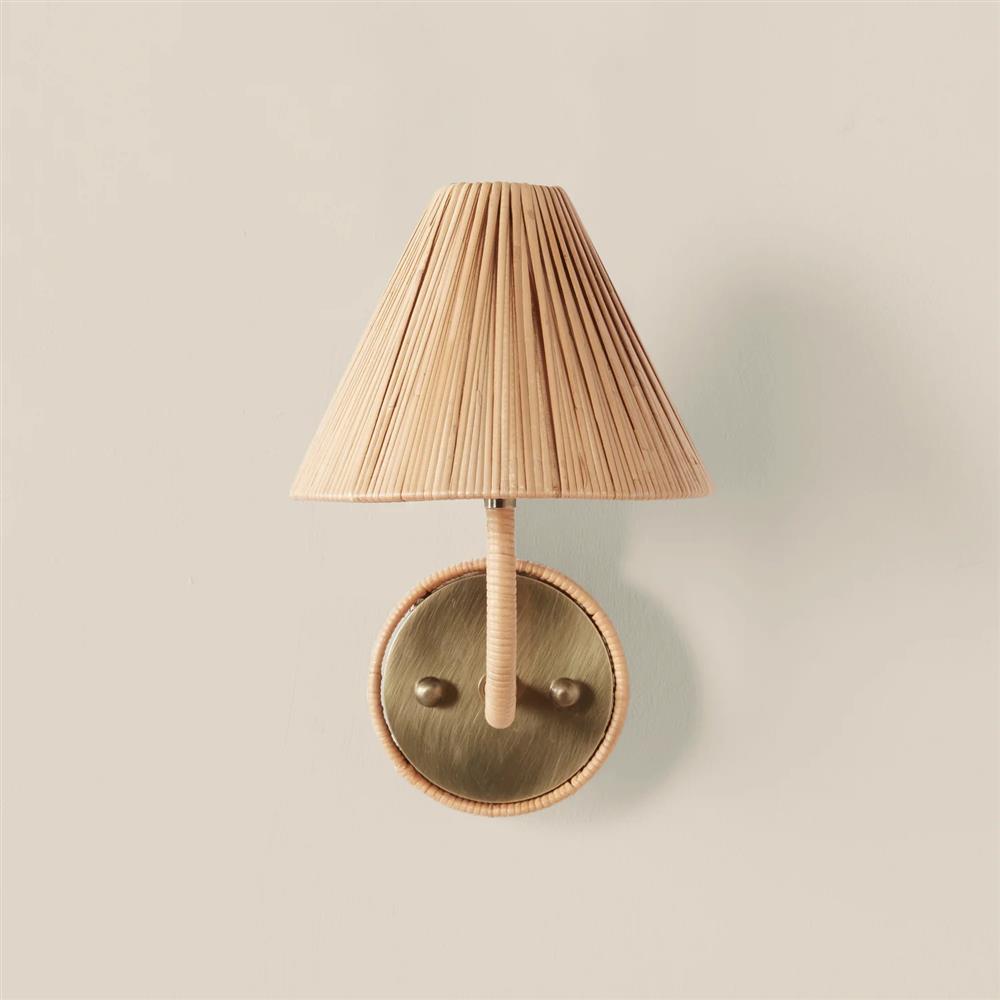 • Polly Coastal Beach Brown Rattan Shade Natural Brass Sconce|Kathy Kuo Home