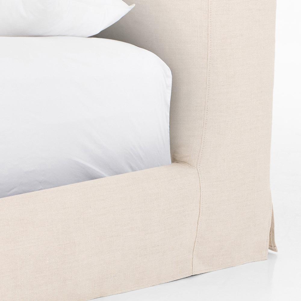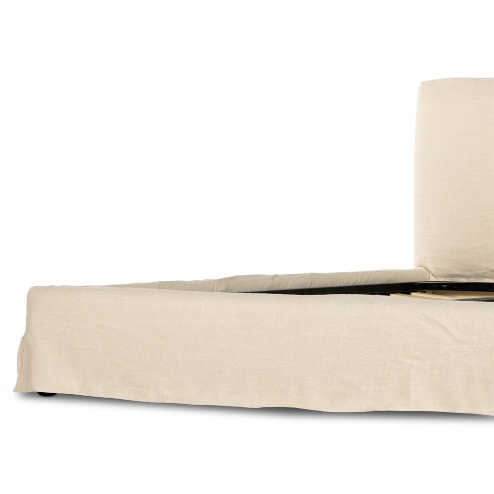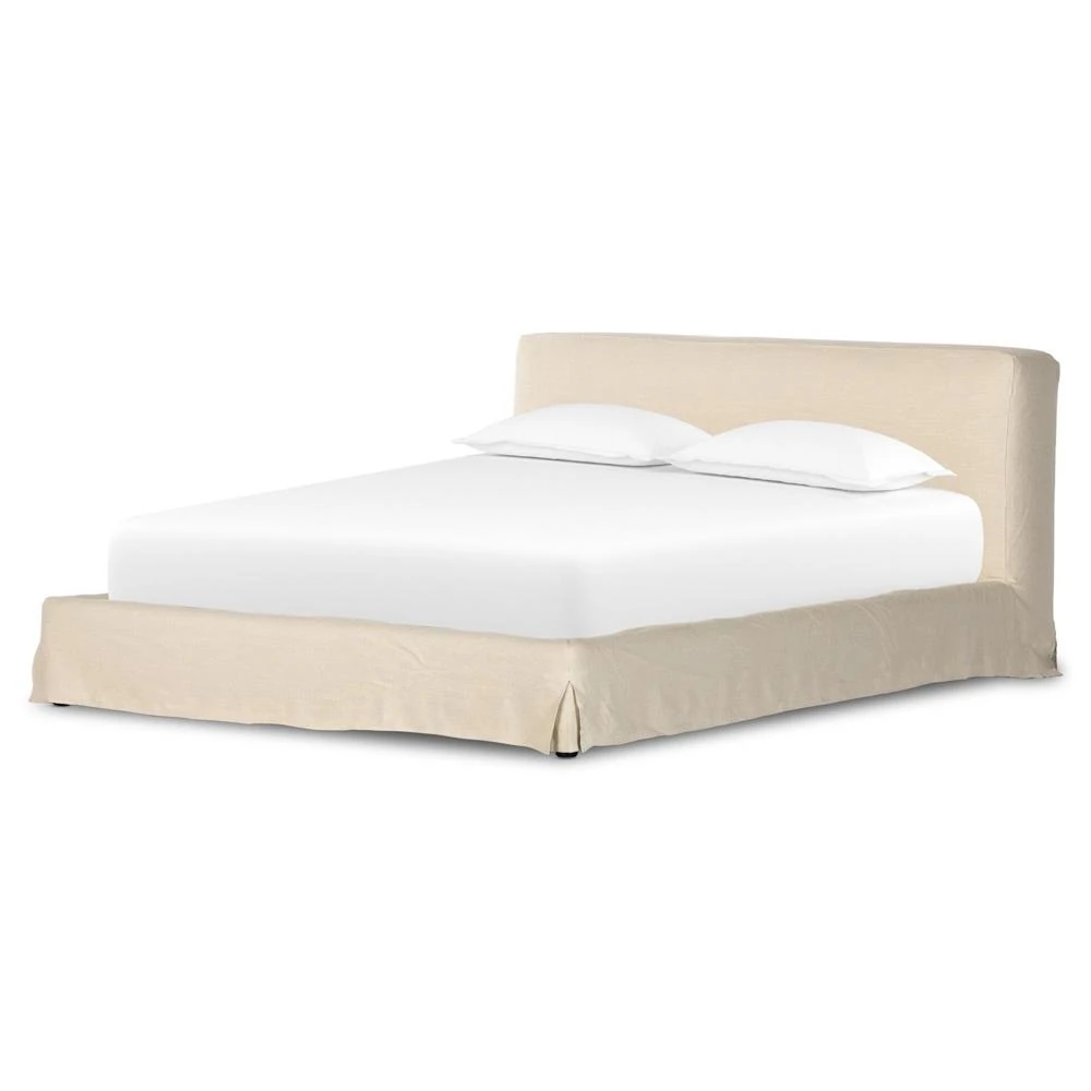 Linus Rustic Lodge Beige Linen Upholstered Slipcovered Bed - King