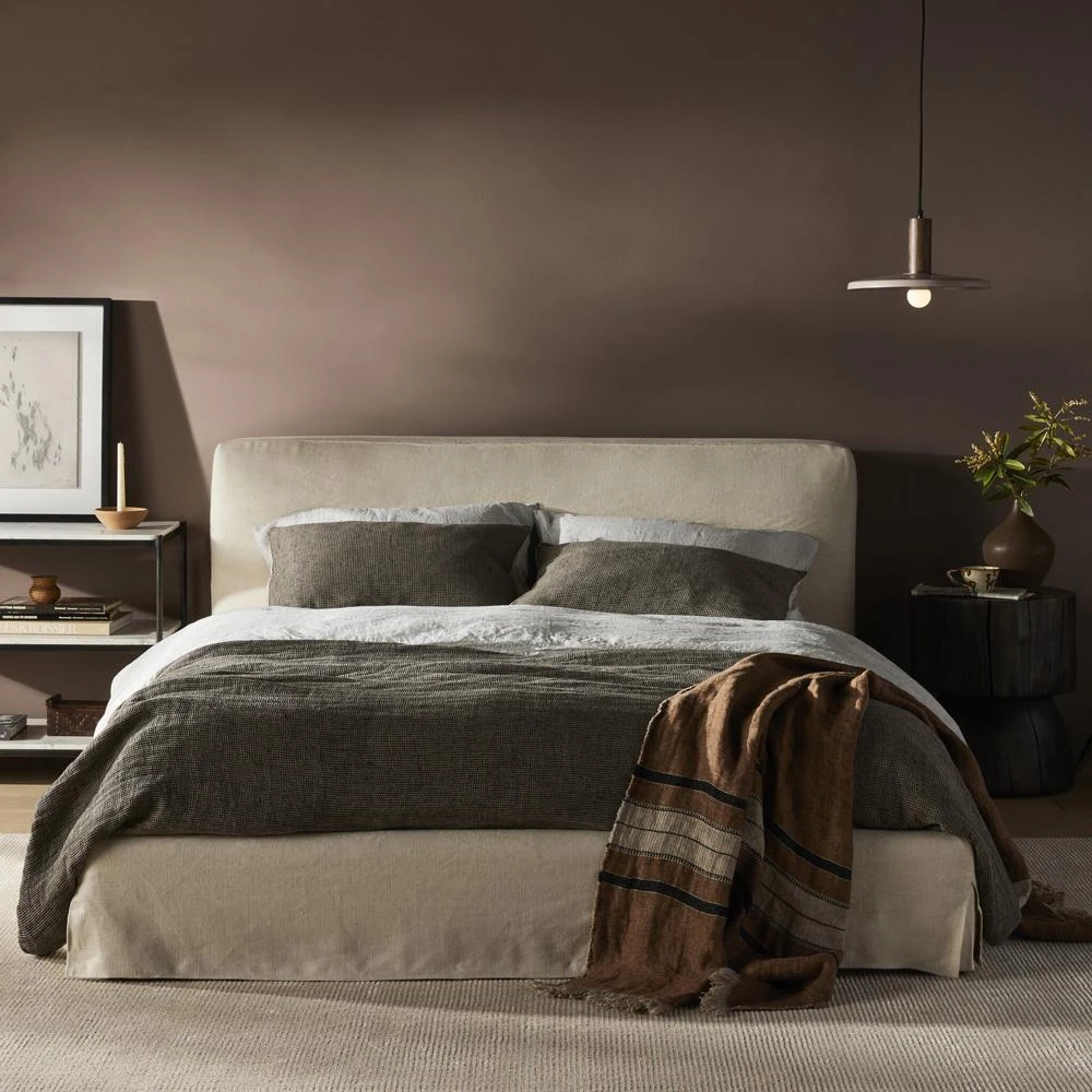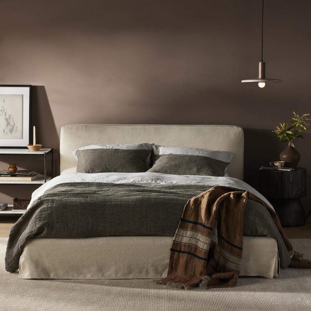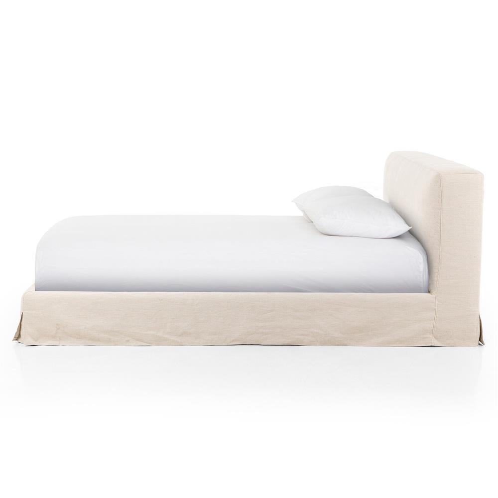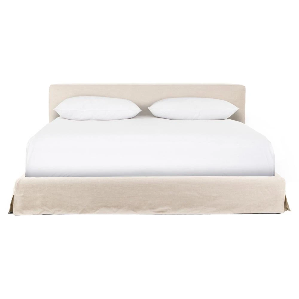 Linus Rustic Lodge Beige Linen Upholstered Slipcovered Bed - King
