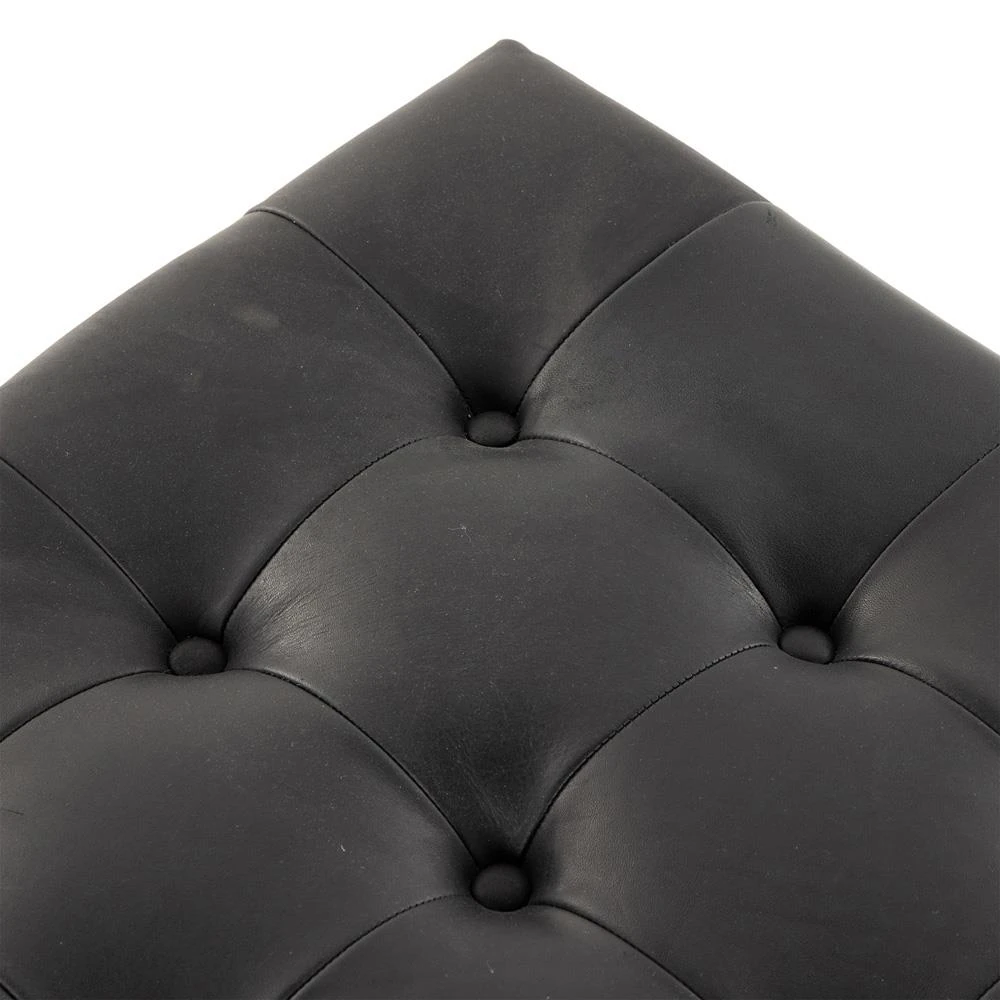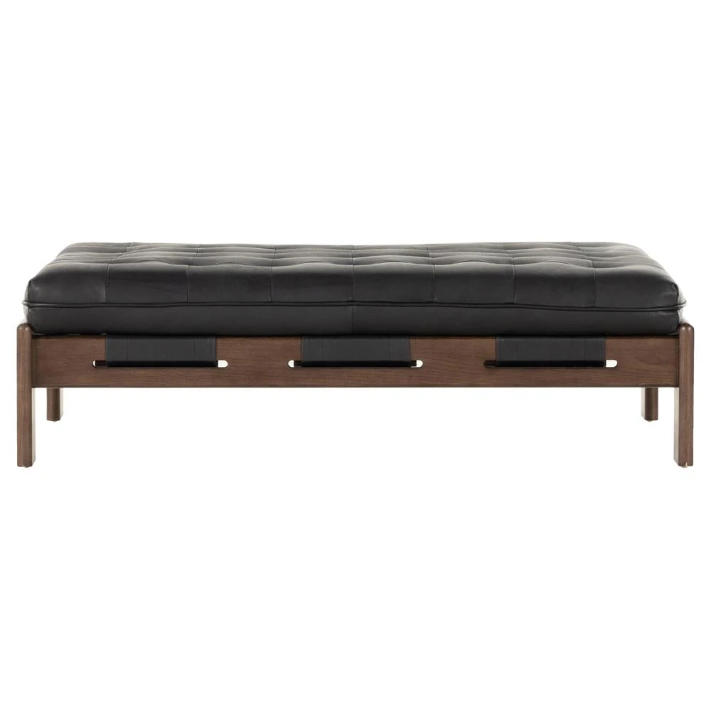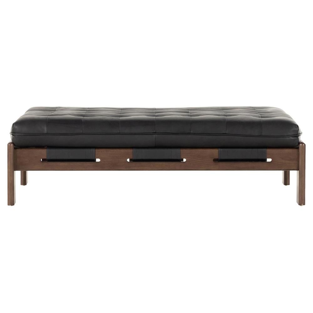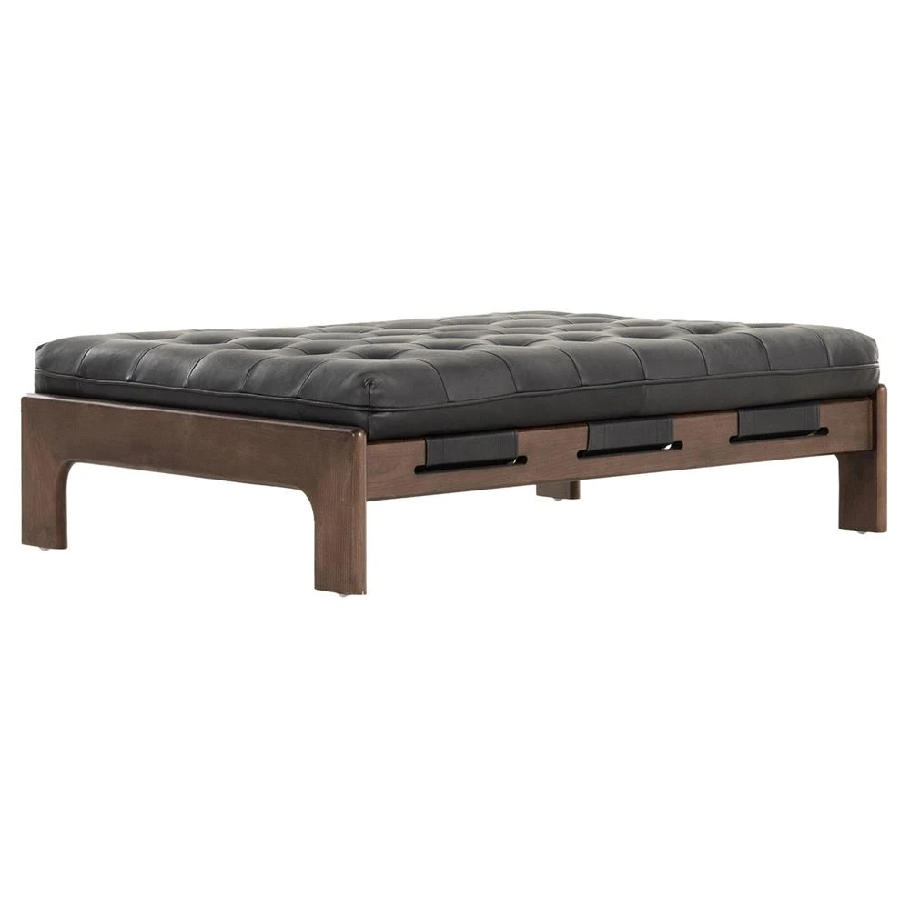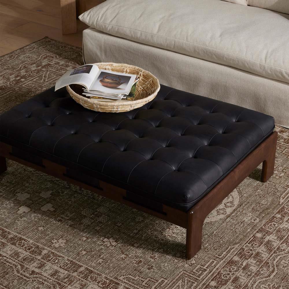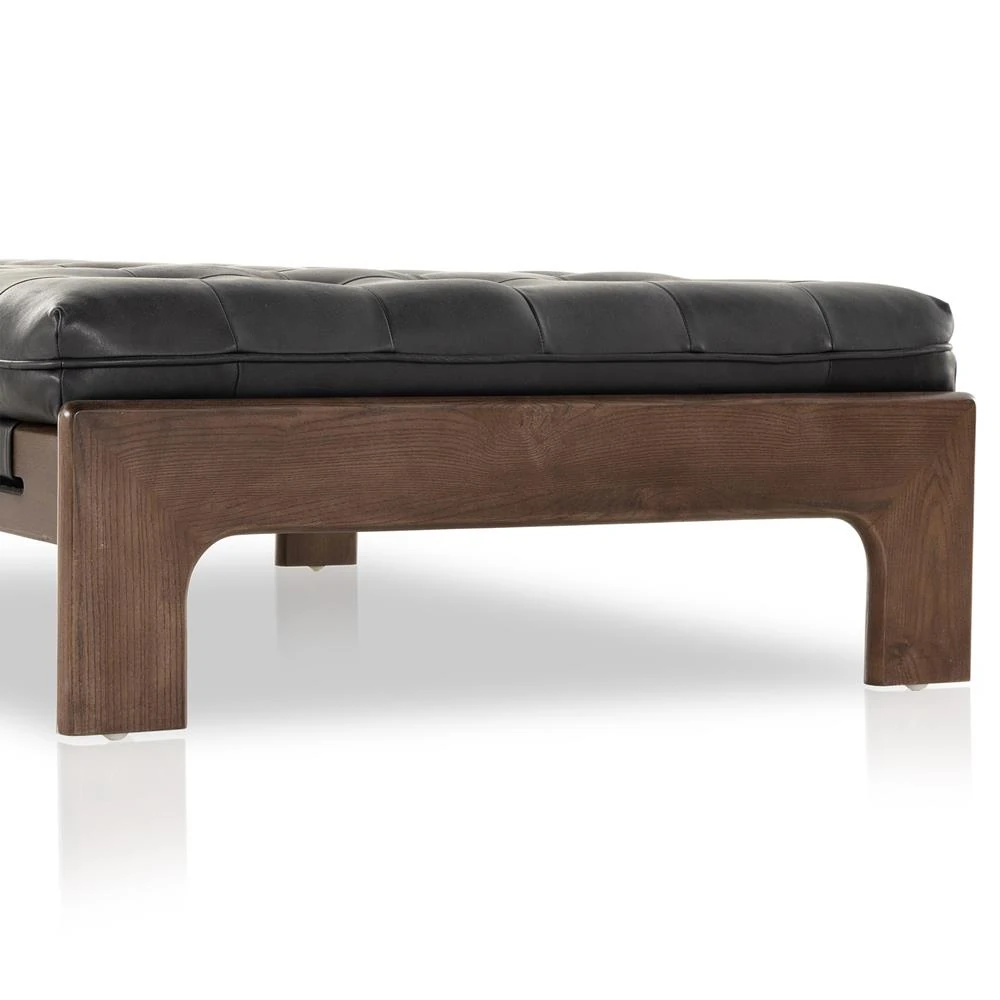 Hadley Black Upholstered Leather Brown Wood Rectangular Tufted Cocktail Ottoman