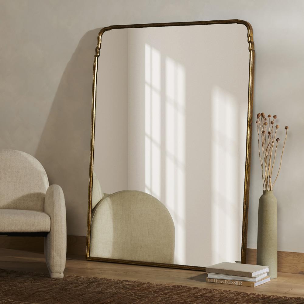 • Pauline French Country Gold Iron Arched Frame Floor Mirror|Kathy Kuo Home