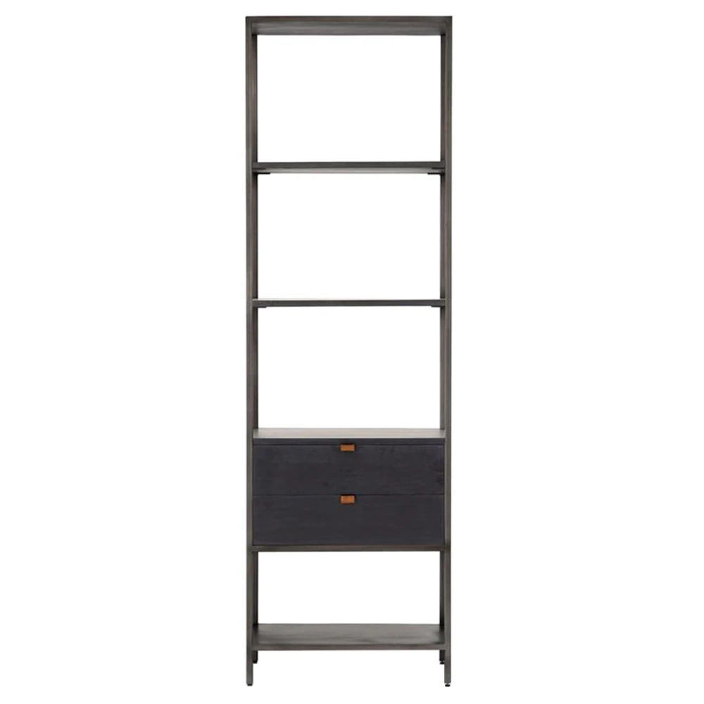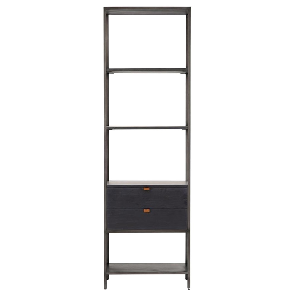 Open Box Theodore Industrial Loft Black Wood Grey Iron Frame 2 Drawer Display Bookcase