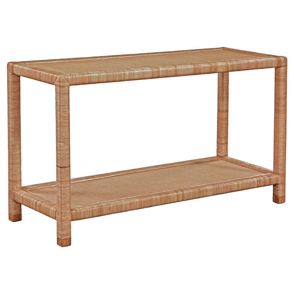 • Mako Coastal Beach Blue Woven Rattan Rectangular Console Table|Kathy Kuo Home