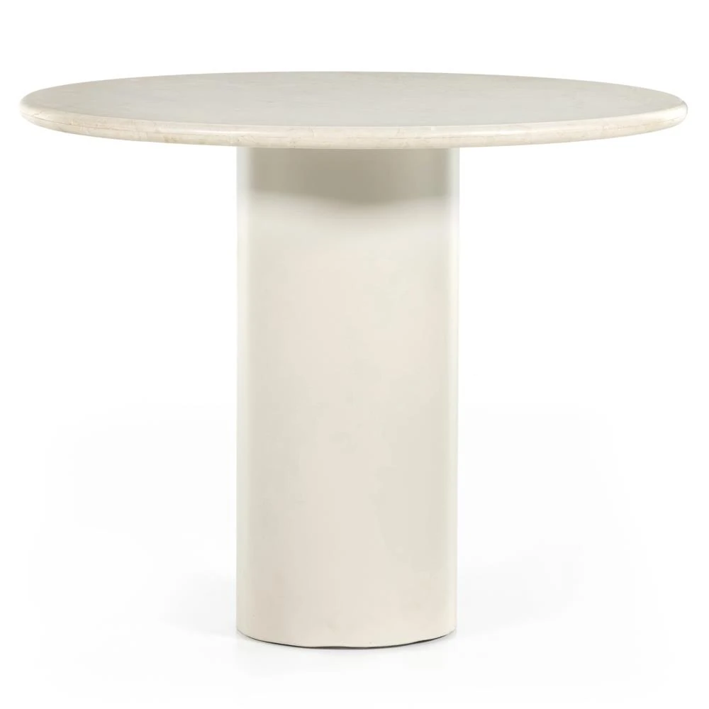 Gary French Country Cream Marble Top Iron Base Round Dining Table - Small - 38"W|Kathy Kuo Home
