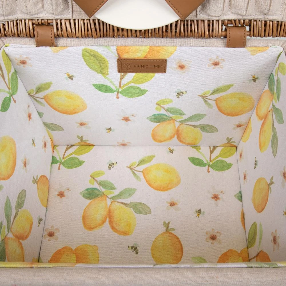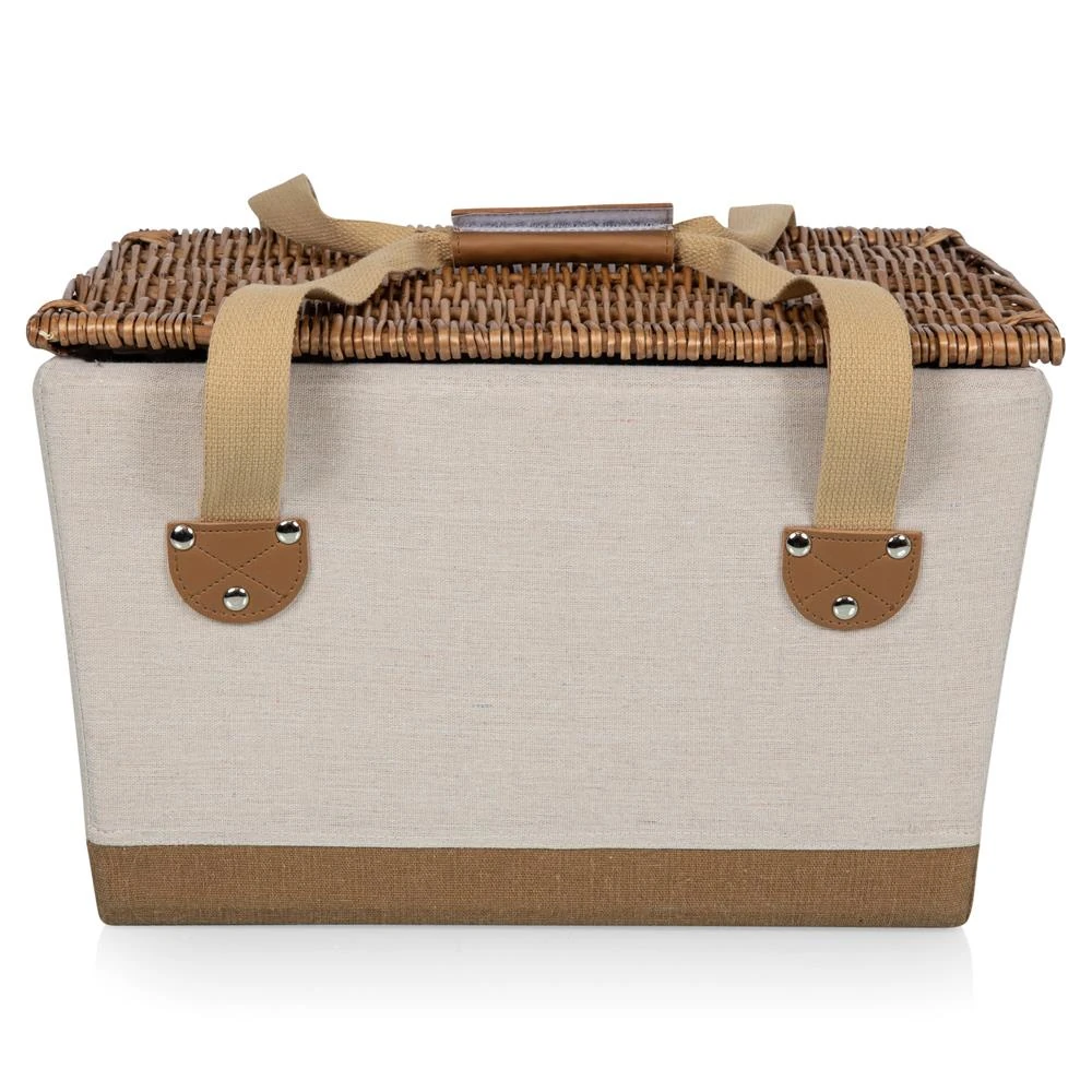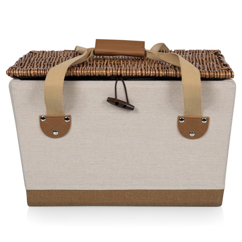 Lauren Modern Classic Brown Willow Cream Heart Picnic Basket with Serveware for 2