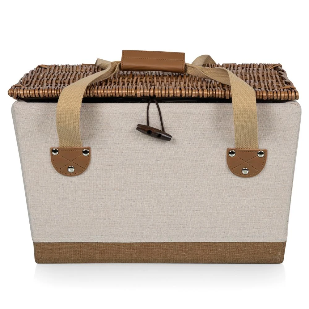 Sandra Coastal Brown Handwoven Willow Picnic Basket with Serveware for 4