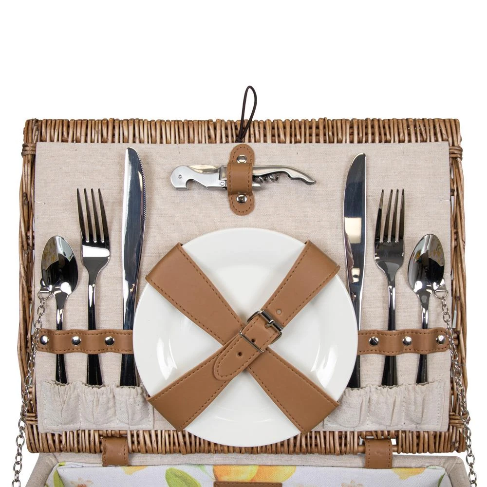 Surset French Brown Willow Green Picnic Basket with Serverware for 2