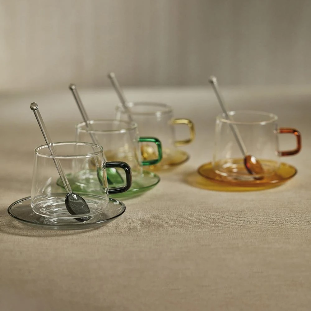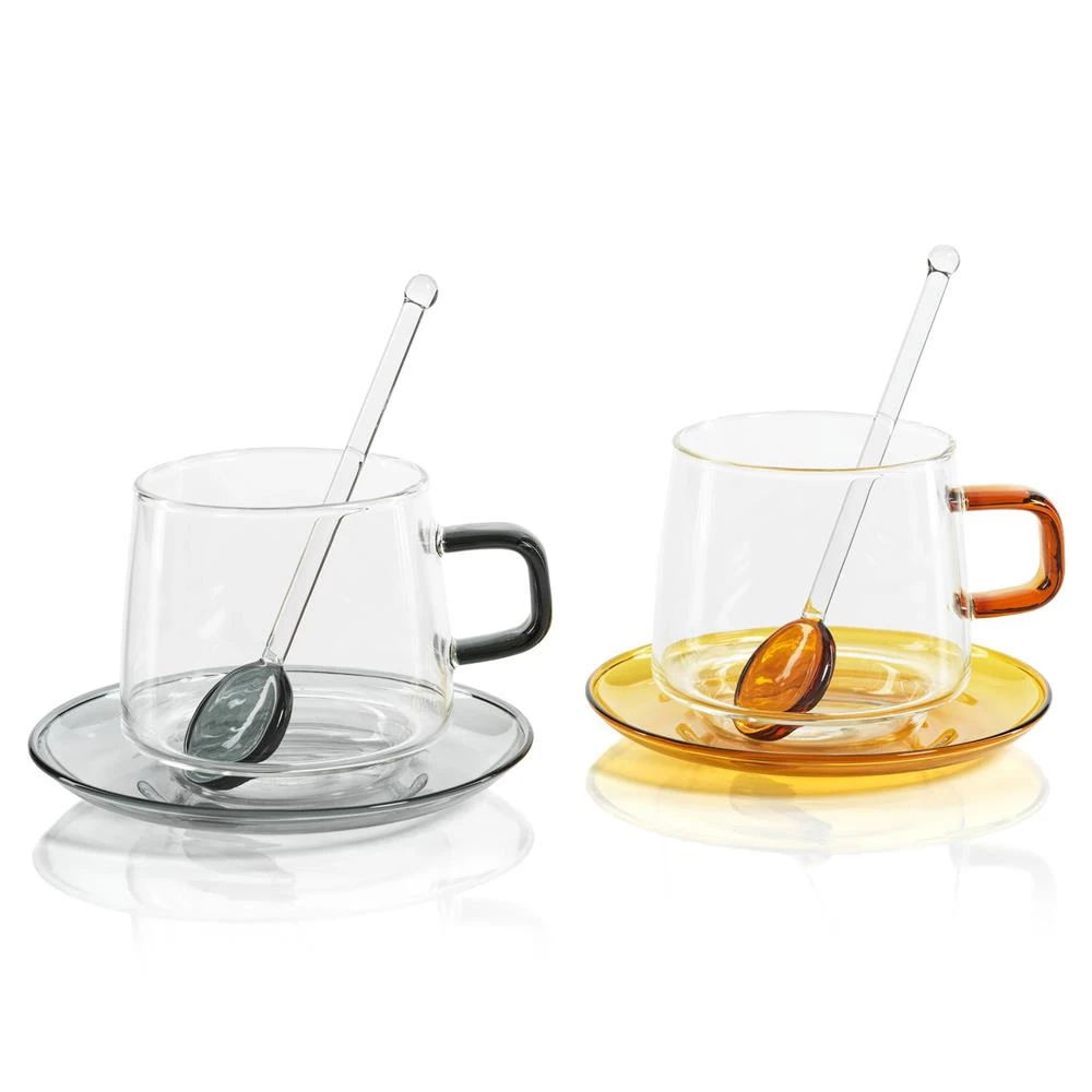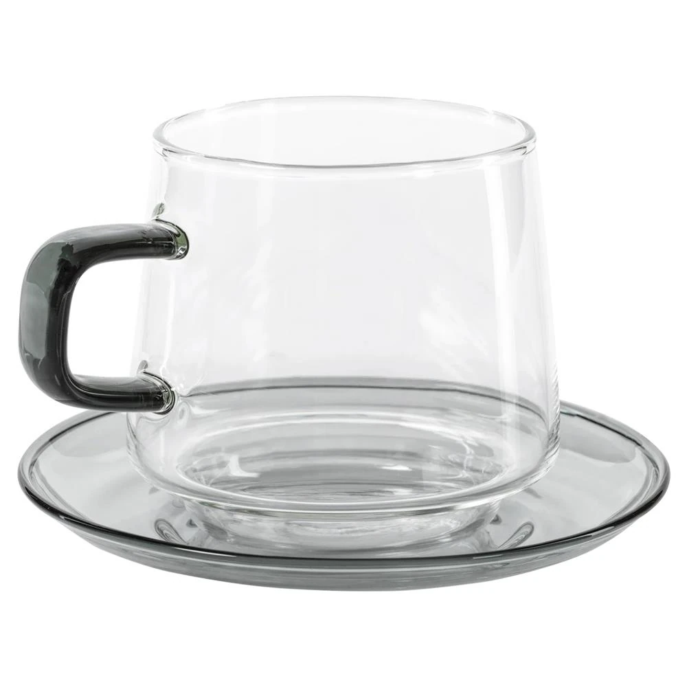 Faye Modern Classic Grey Glass Tea Cup and Saucer - Set of 4
