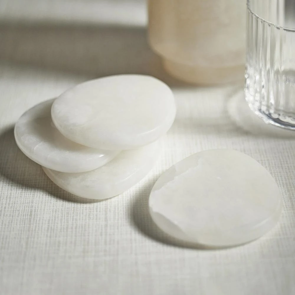 Fia Modern Classic Natural White Alabaster Coaster - Set of 4
