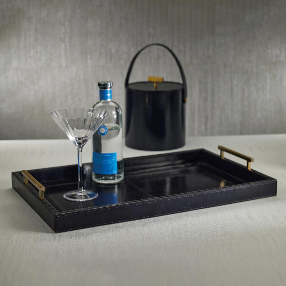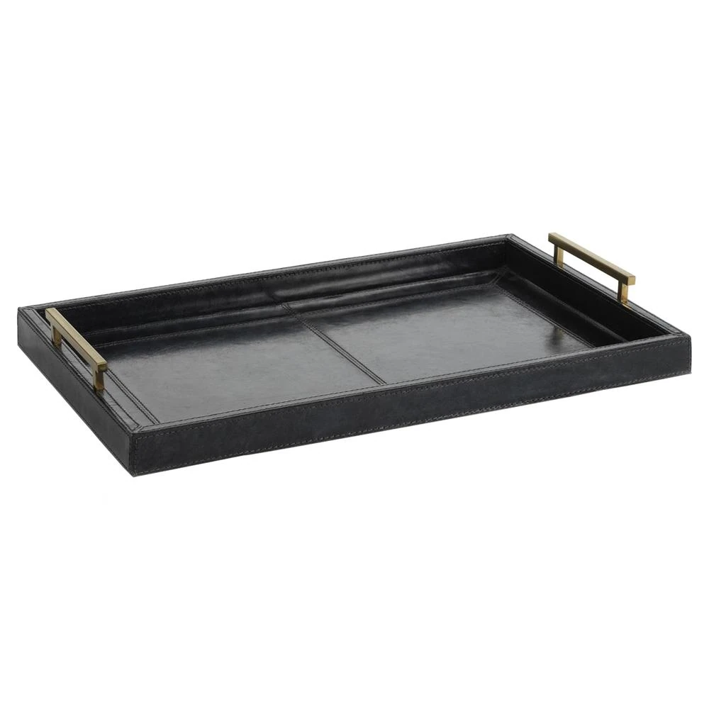 • Livia Updated Traditional Brown Leather Serving Tray - Small|Kathy Kuo Home
