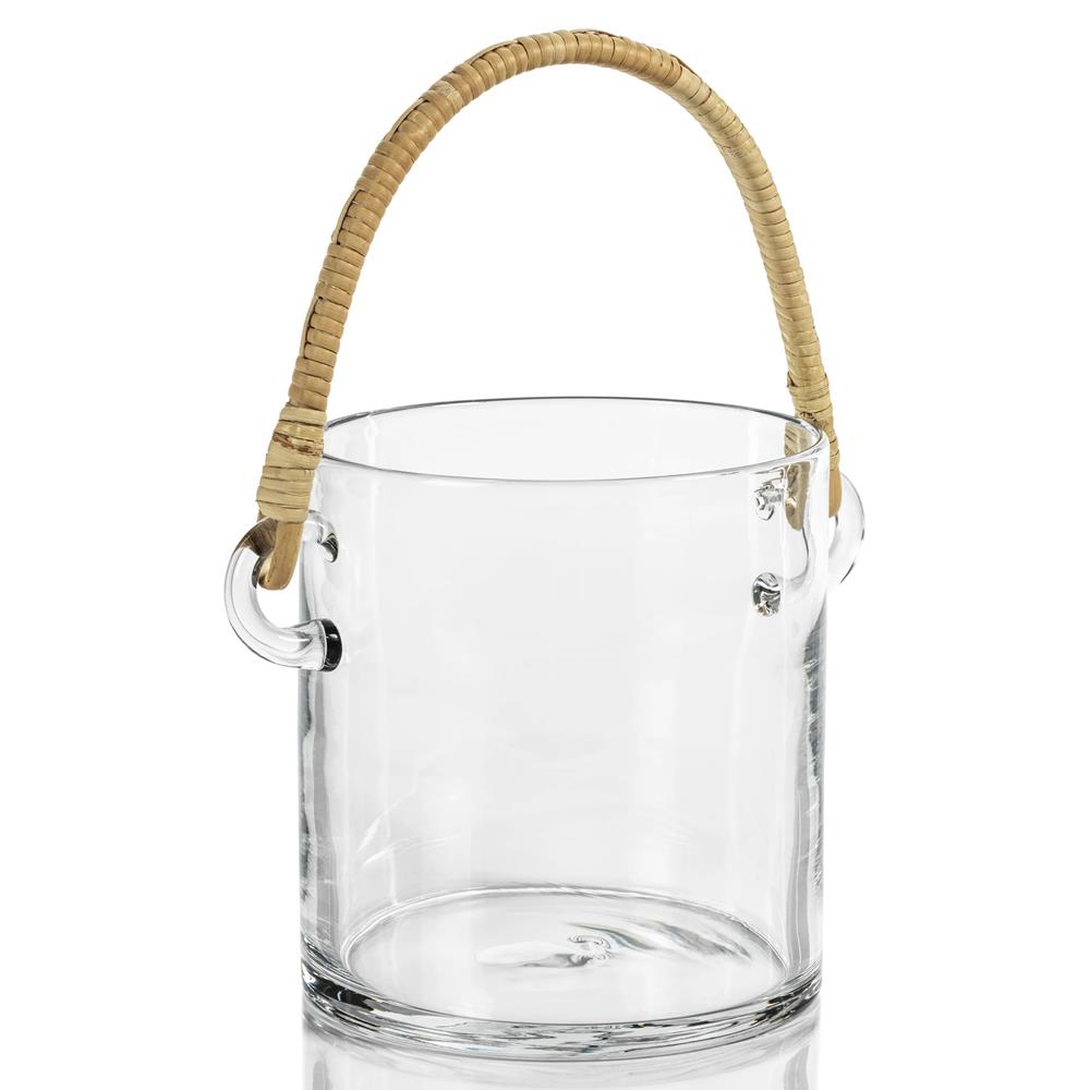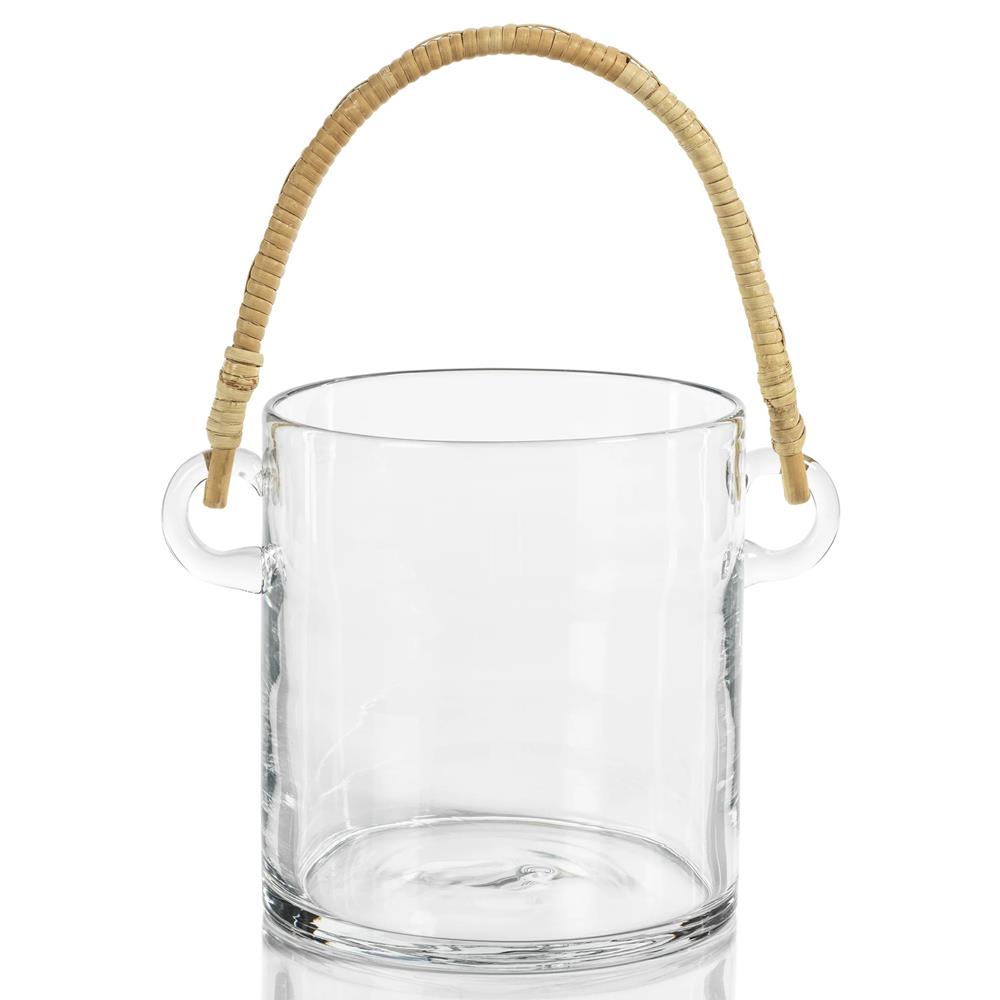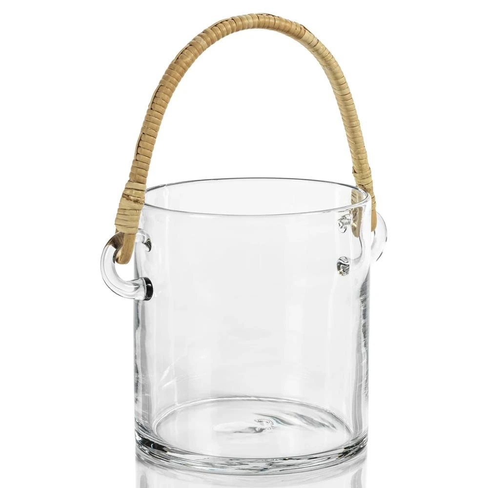 Fatima Coastal Beach Natural Woven Rattan Handle Glass Ice Bucket