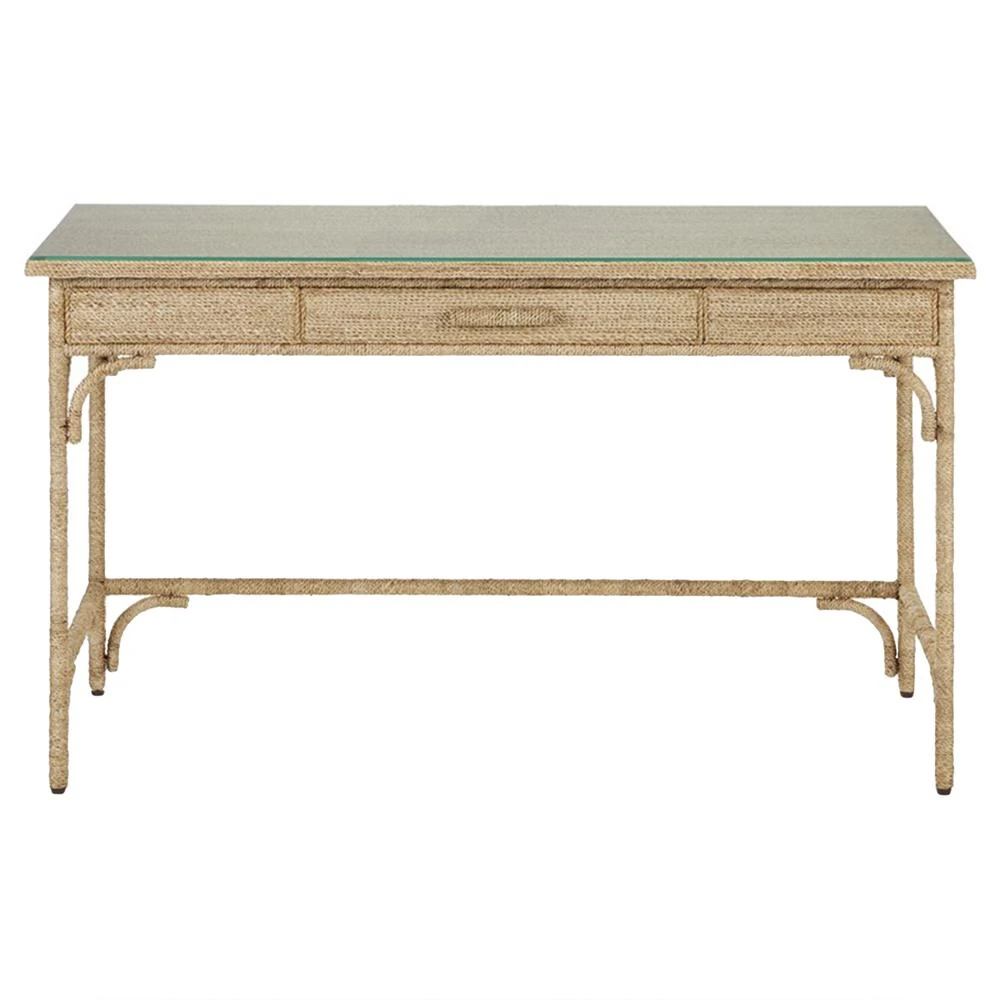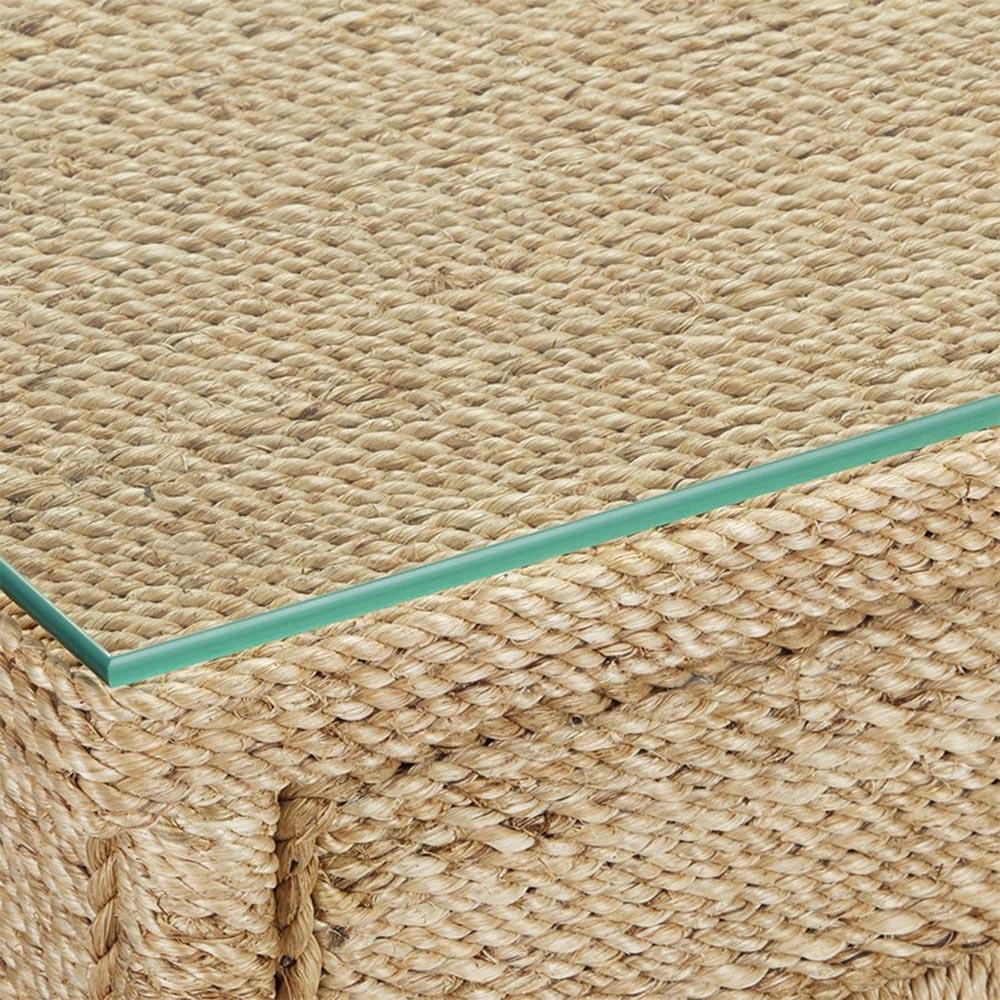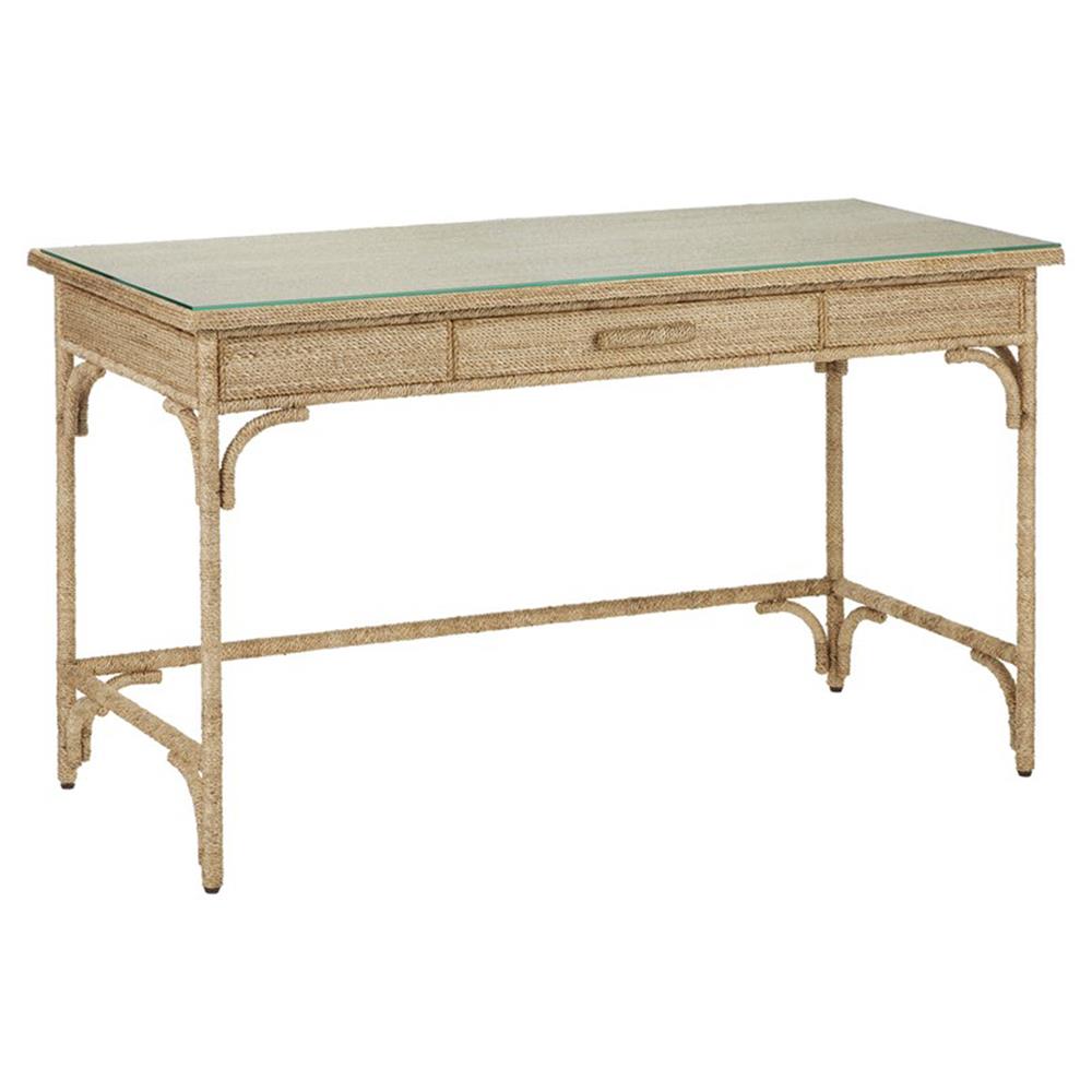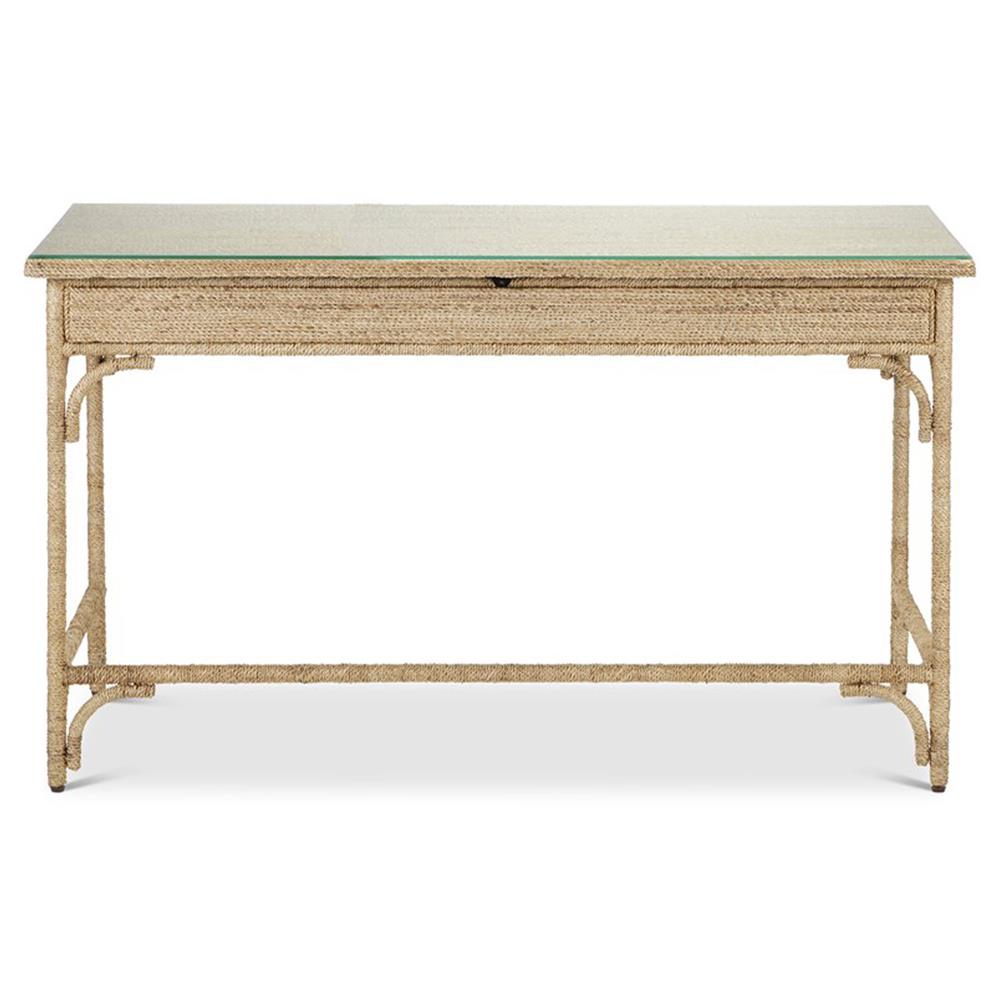 Jesse Coastal Beach Glass Top Natural Abaca Rope 1 Drawer Desk