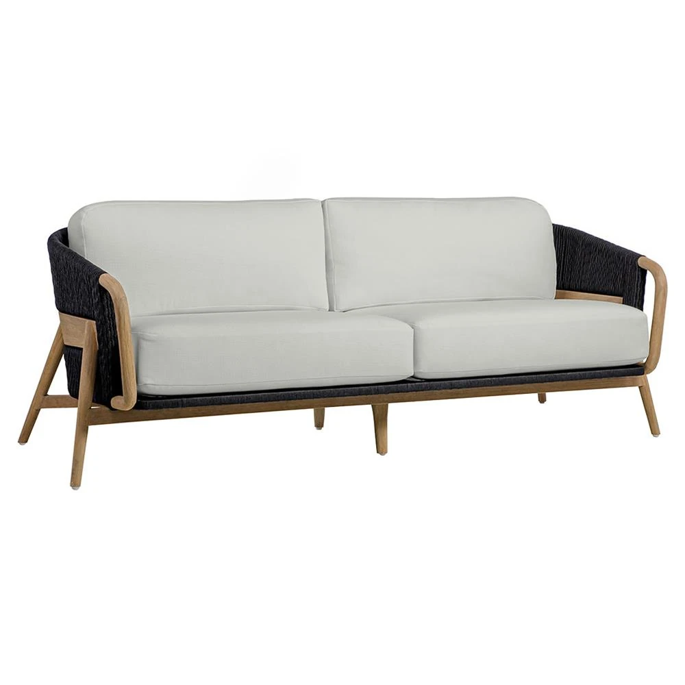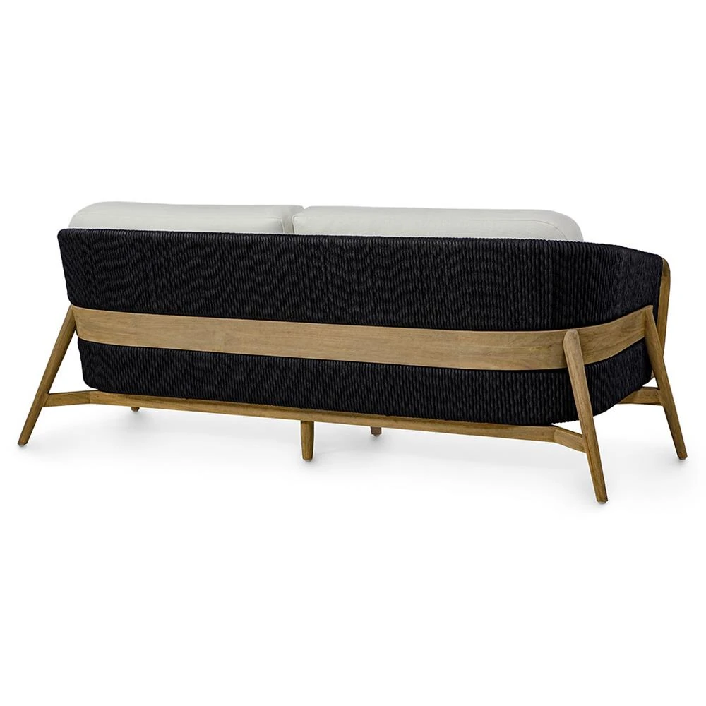 Palecek Casey White Cushion Black Rope Natural Brown Teak Outdoor Sofa - 83"