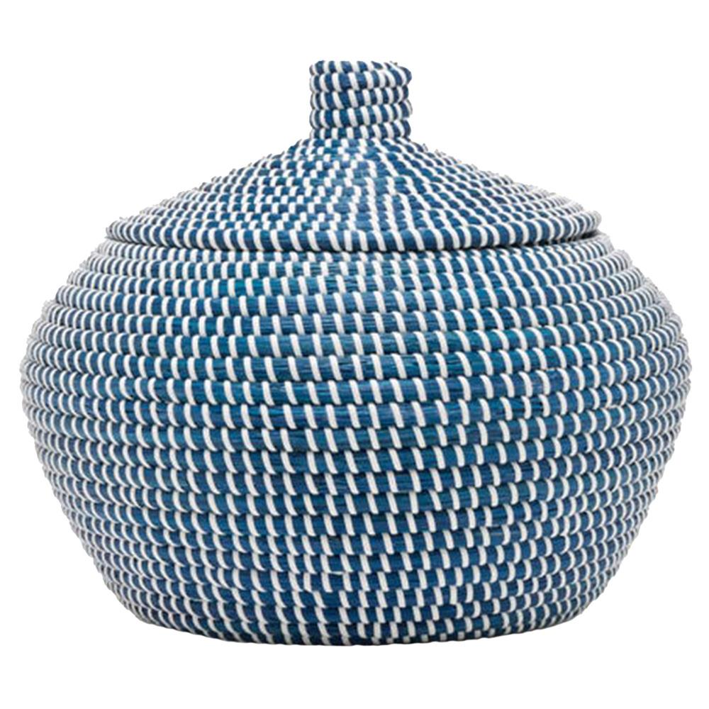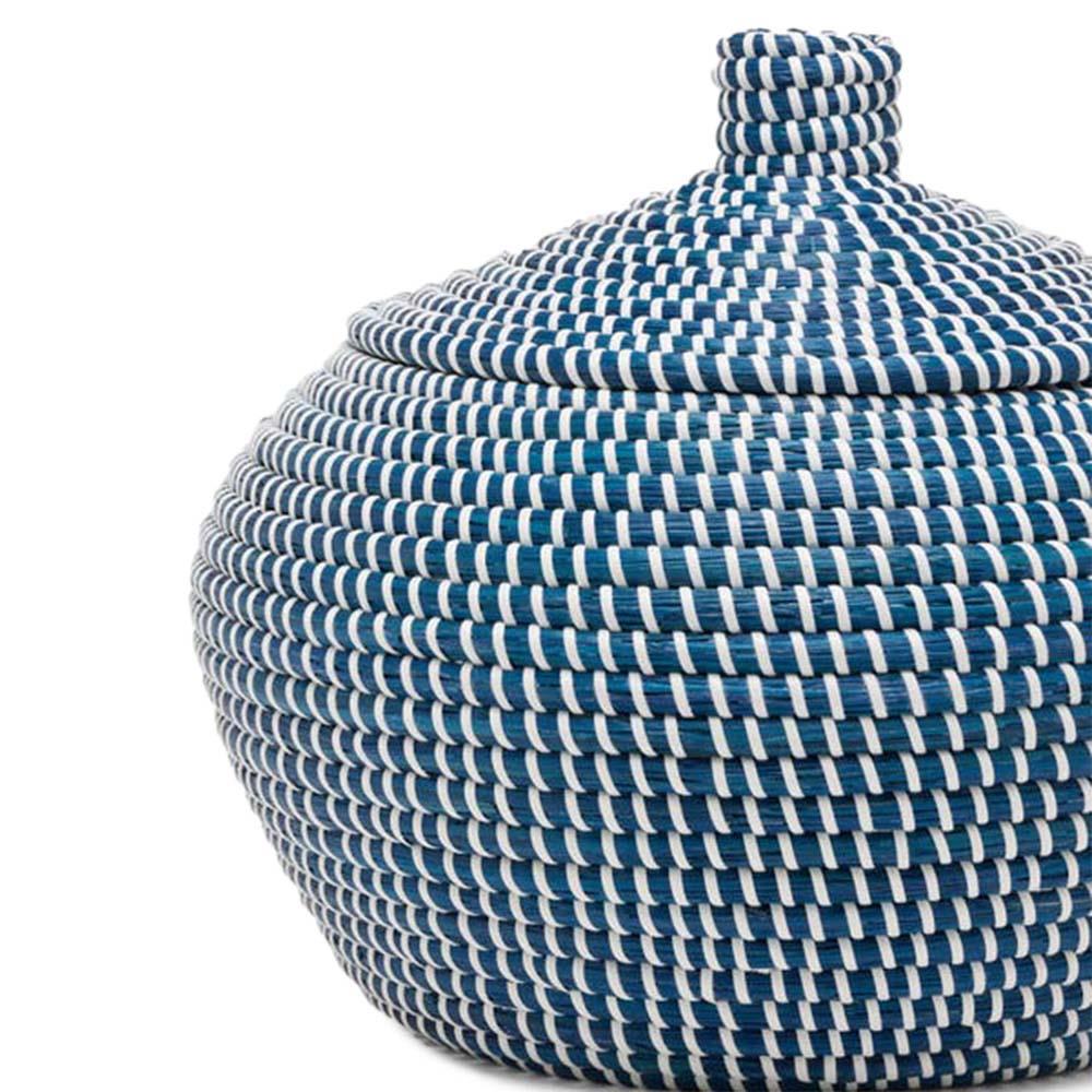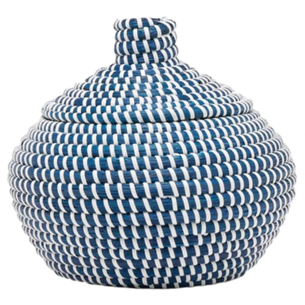 Pigeon and Poodle Roslyn Coastal White Woven Navy Seagrass Tall Floor Basket