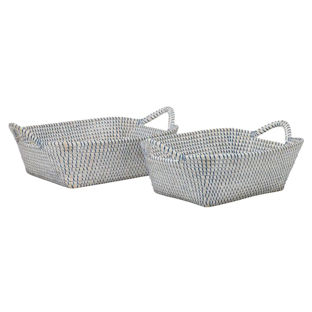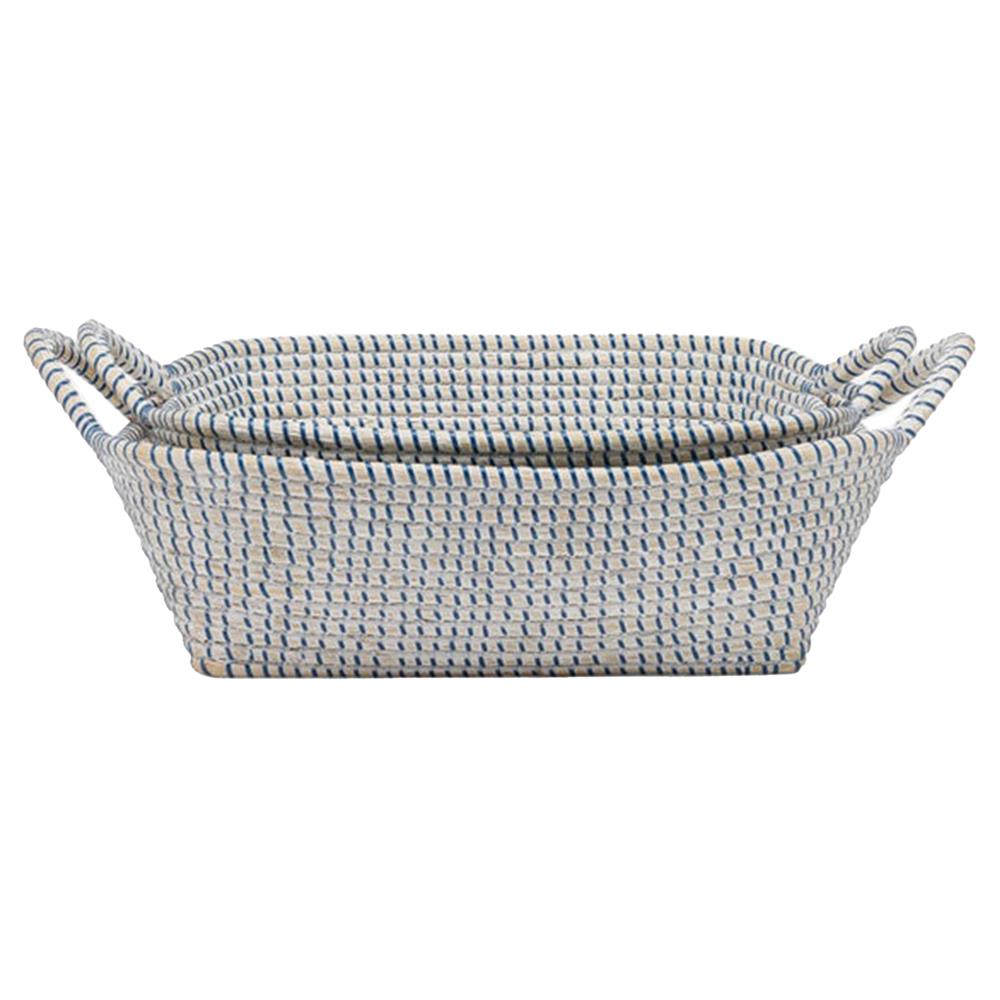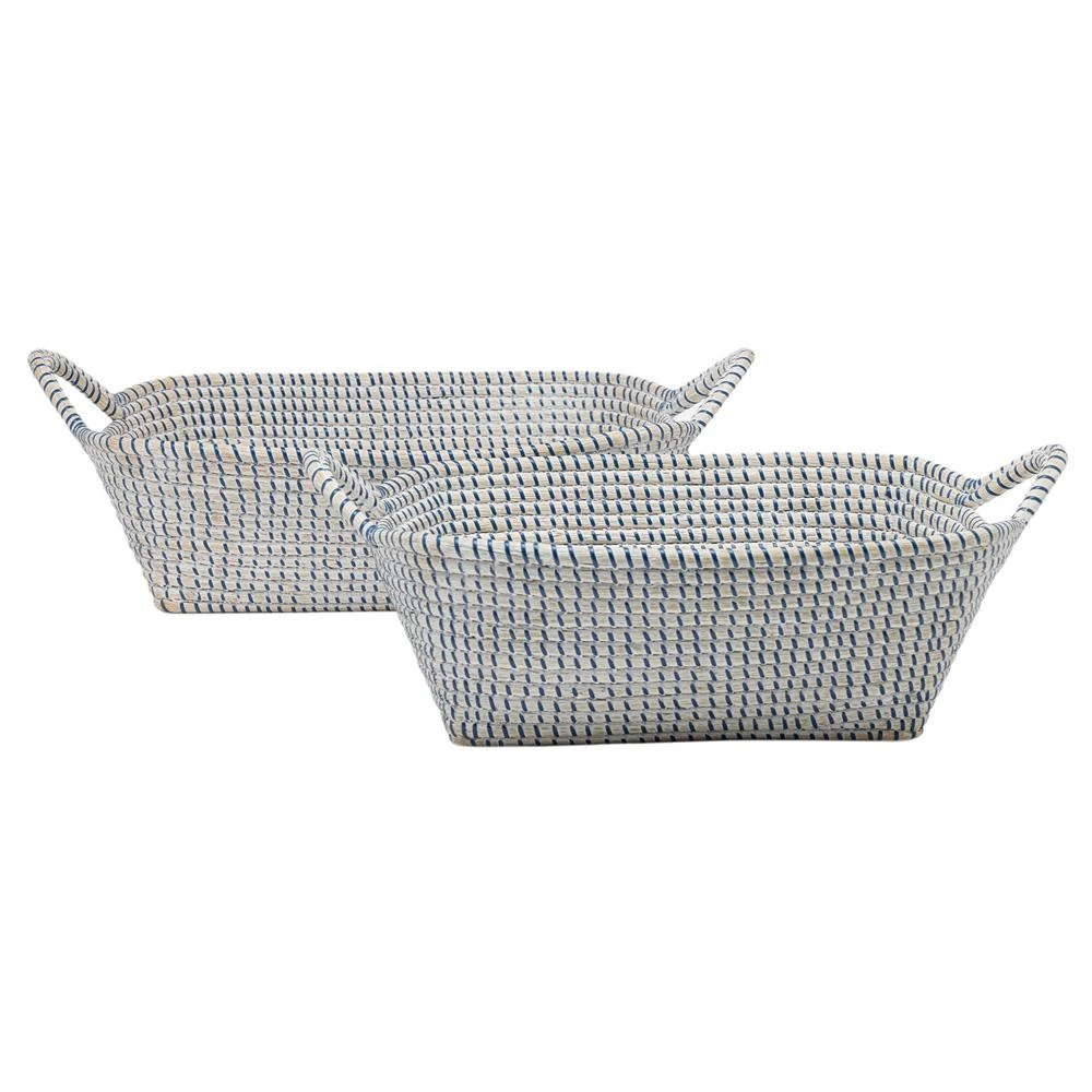 Pigeon and Poodle Roslyn White Woven Navy Seagrass Basket - Set of 2