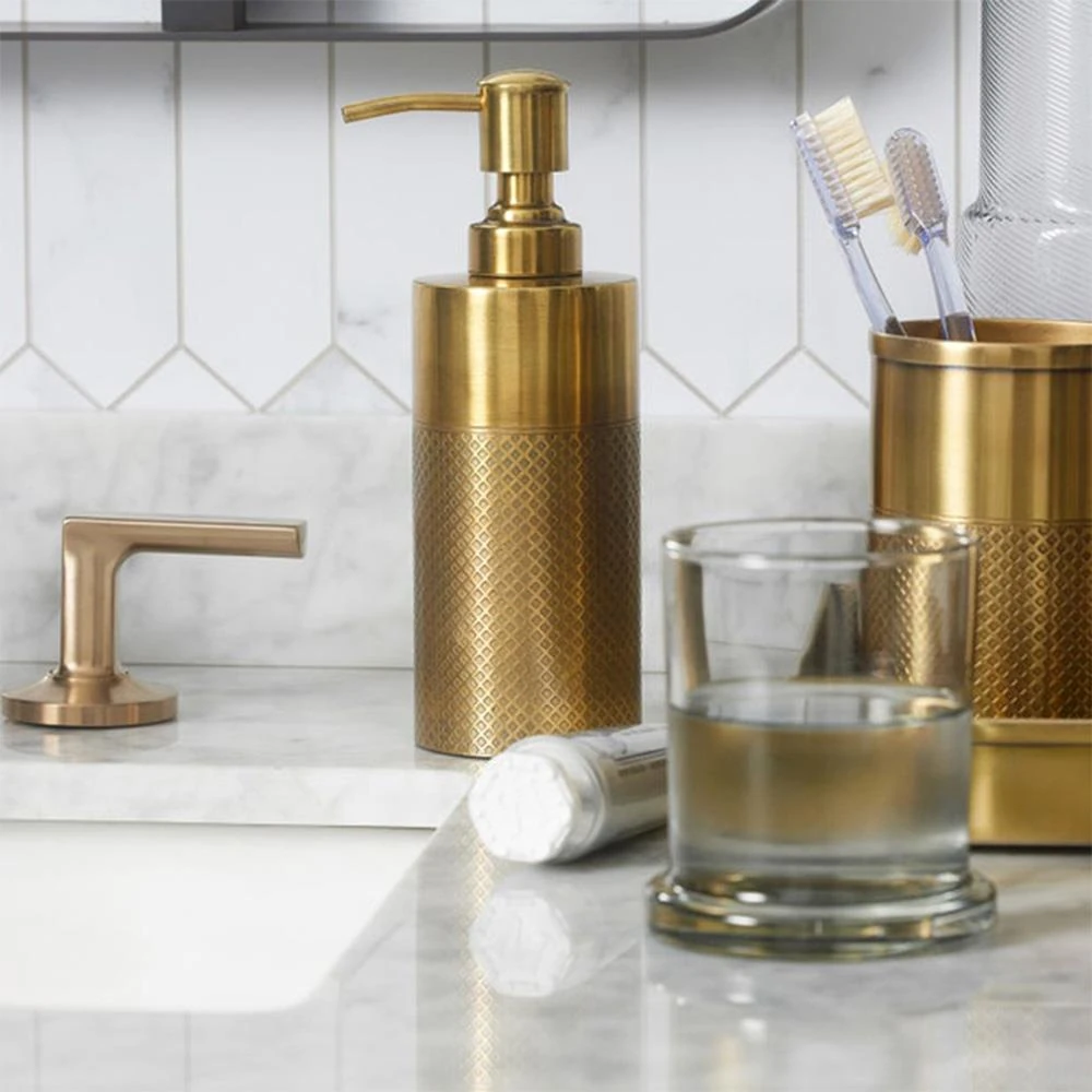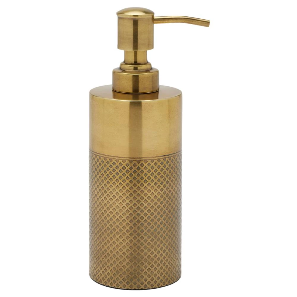 • Pigeon and Poodle Redon Modern Antique Brass Ribbed Metal Soap Pump - Small|Kathy Kuo Home