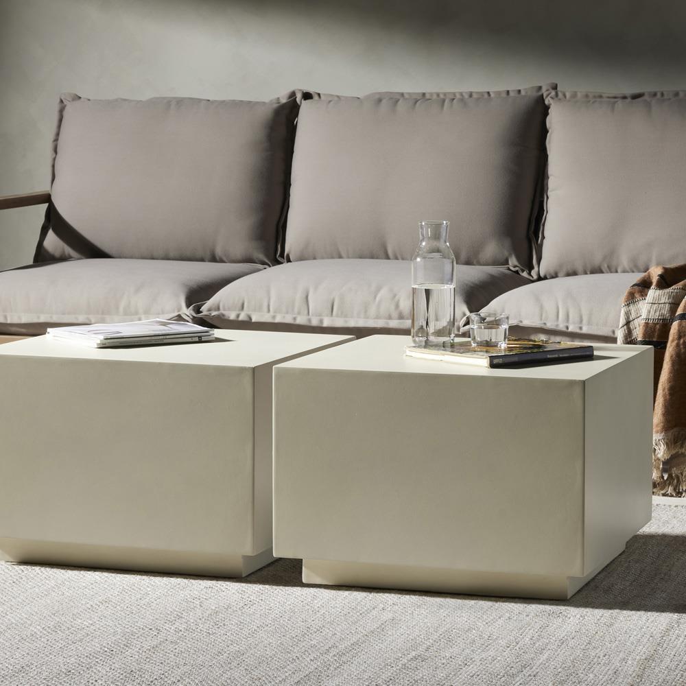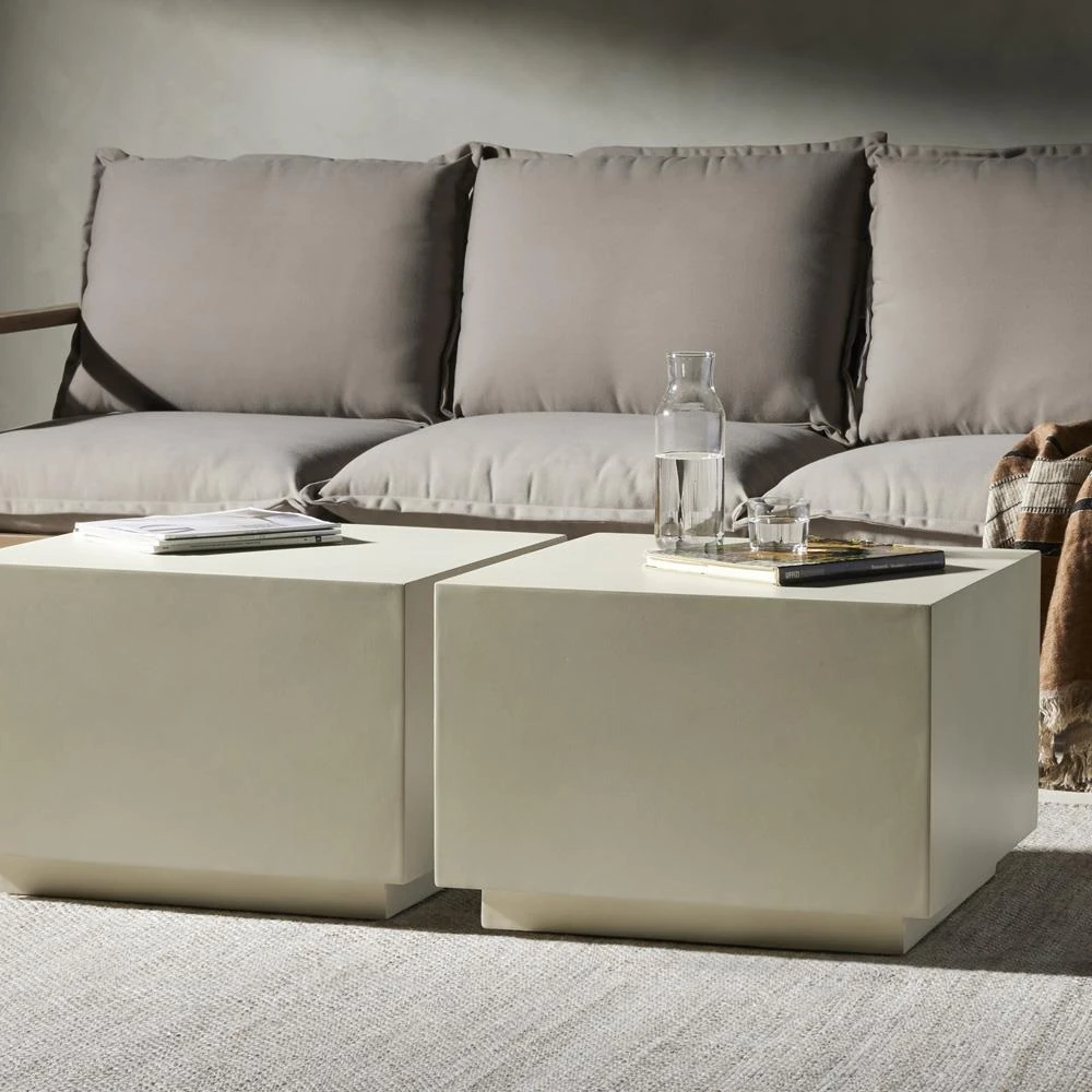 Tricia Industrial Loft White Concrete Square Block Outdoor Coffee Table
