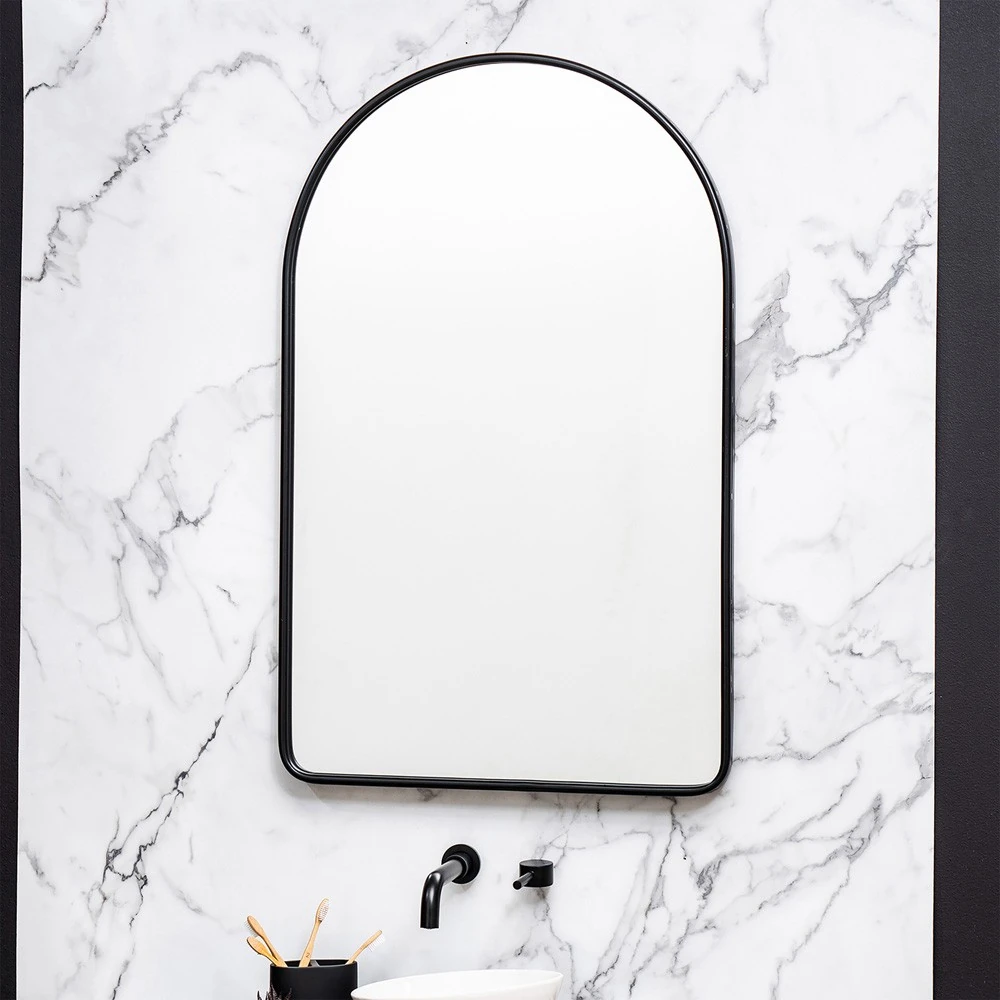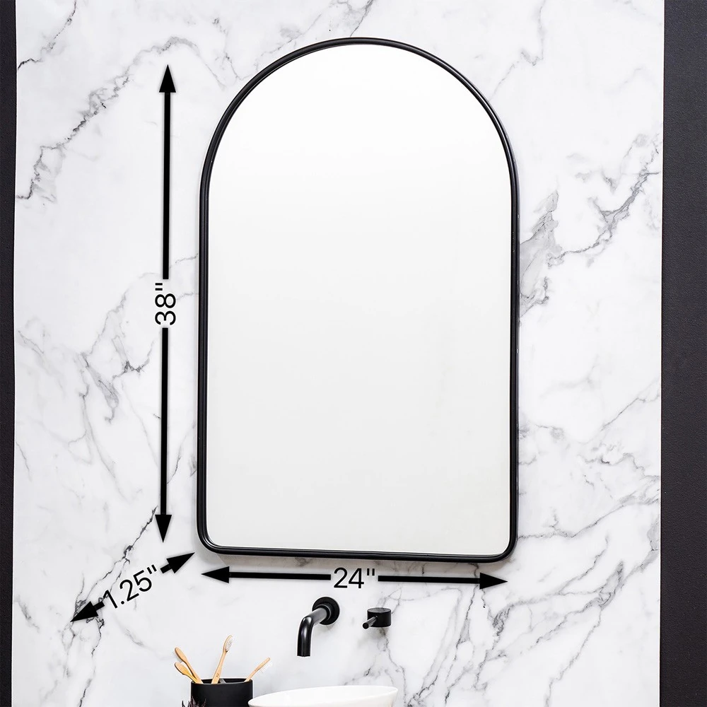 Alaina Industrial Black Metal Frame Arch Wall Mirror