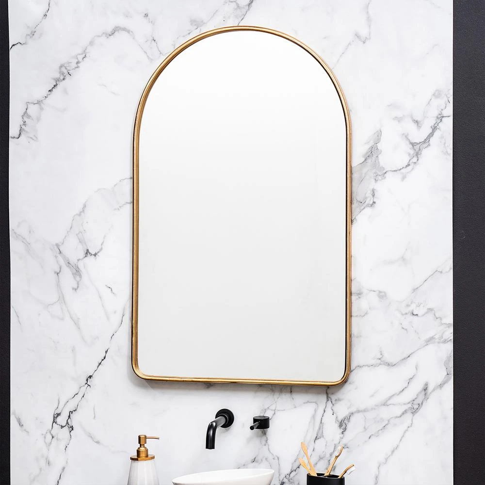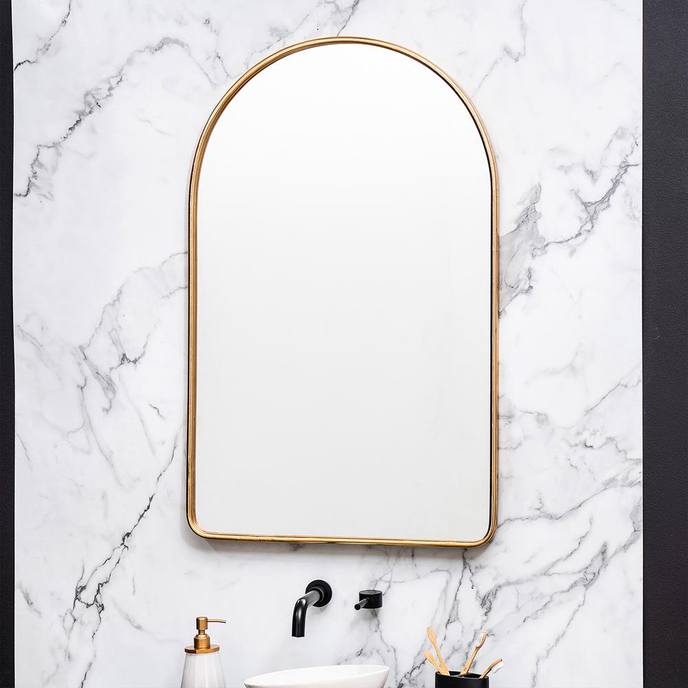Alaina Industrial Gold Metal Frame Arch Wall Mirror