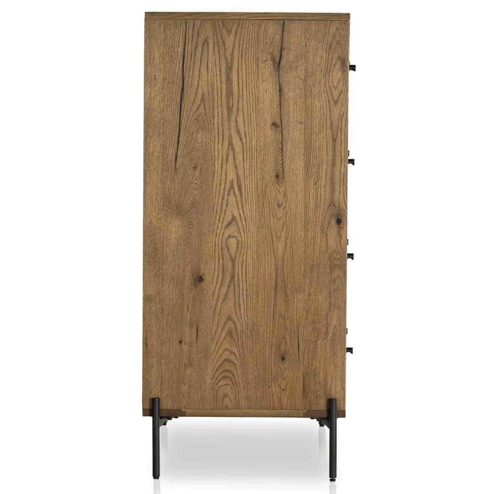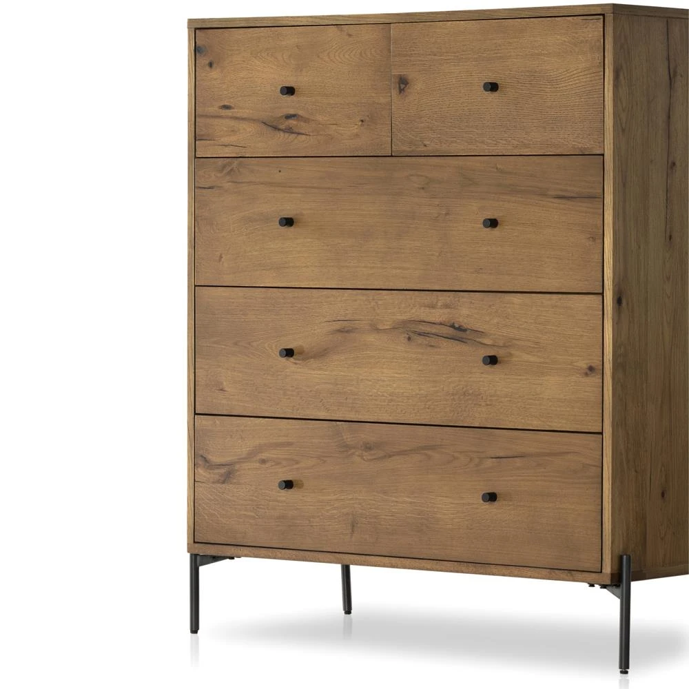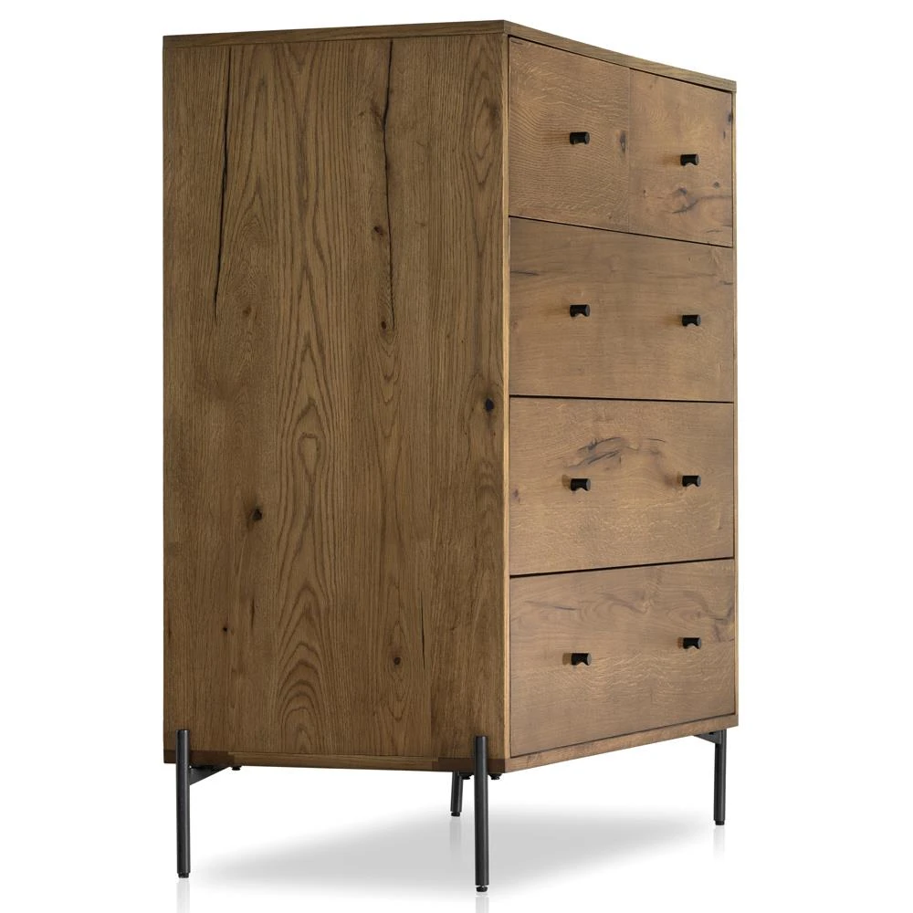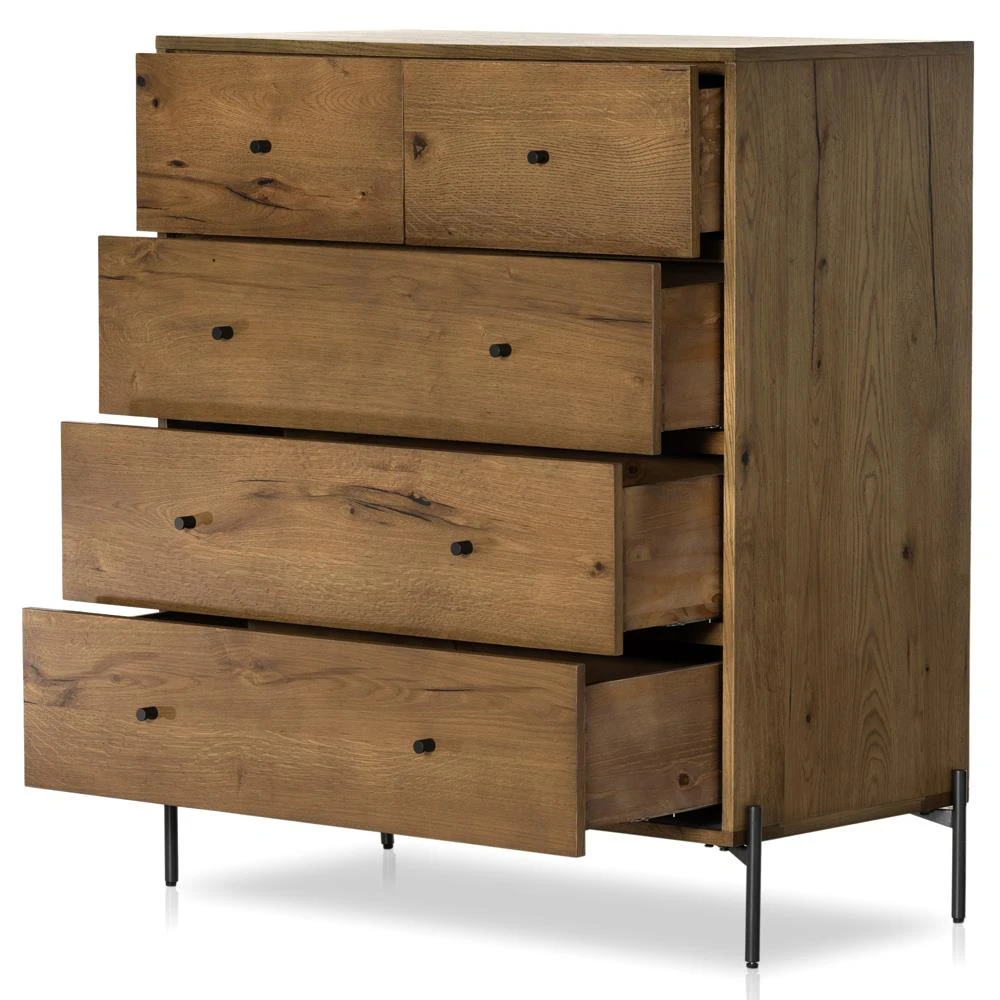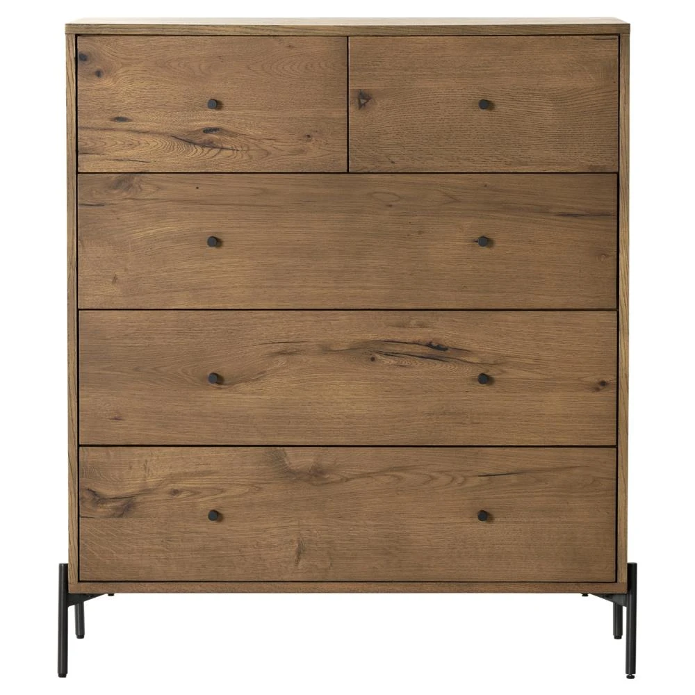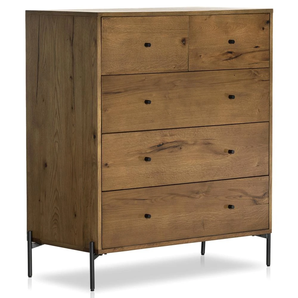 Alina Rustic Lodge Brown Wood Dark Grey Iron 5 Drawer Tall Chest Dresser
