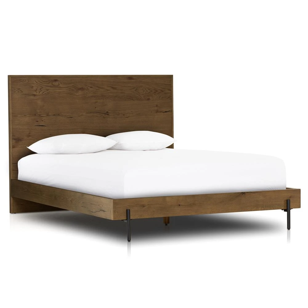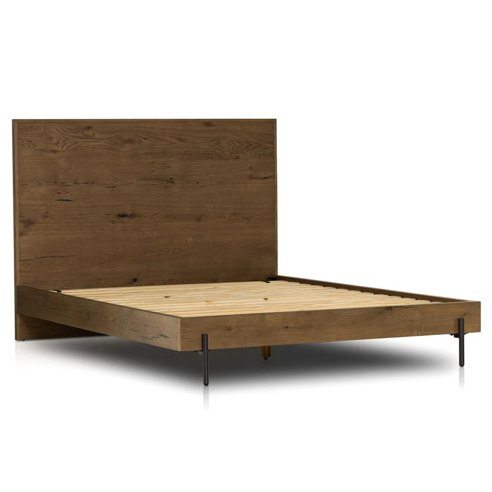 Alina Rustic Lodge Brown Wood Dark Grey Iron Bed - Queen