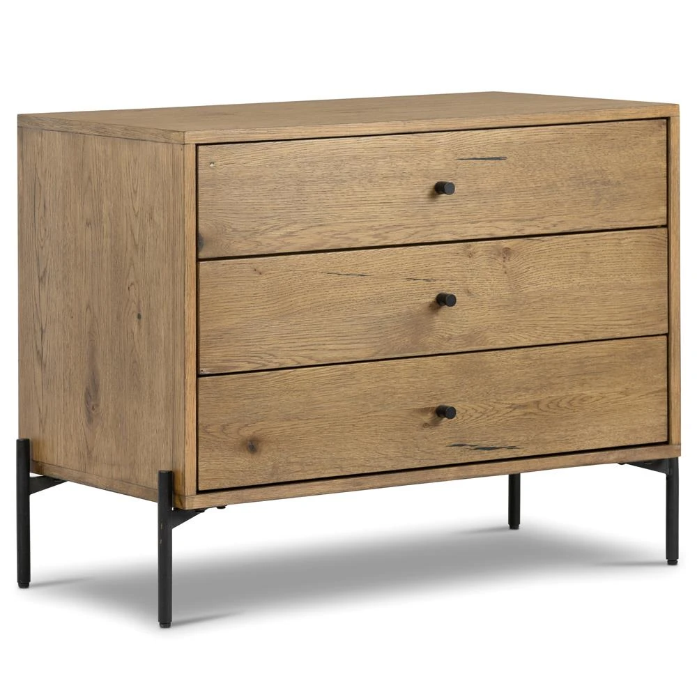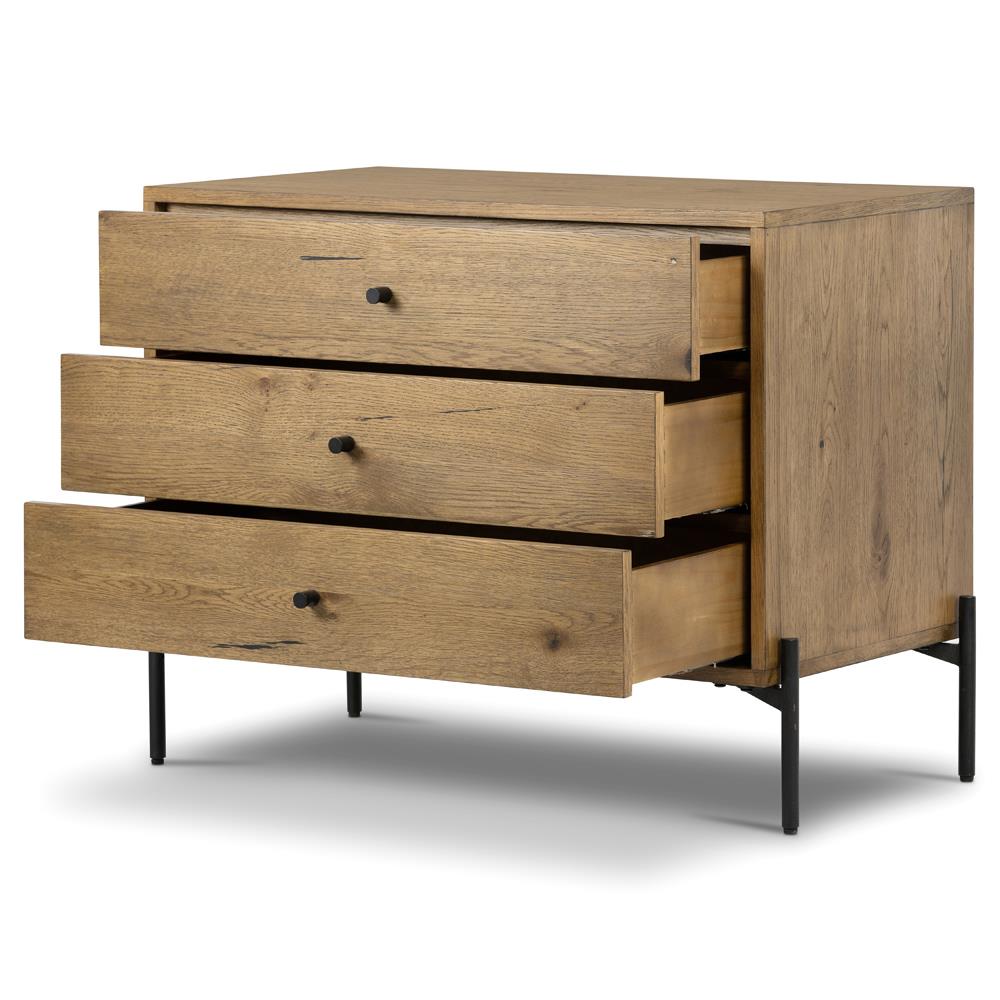 Alina Rustic Lodge Brown Wood Dark Grey Iron 3 Drawer Wide Nightstand
