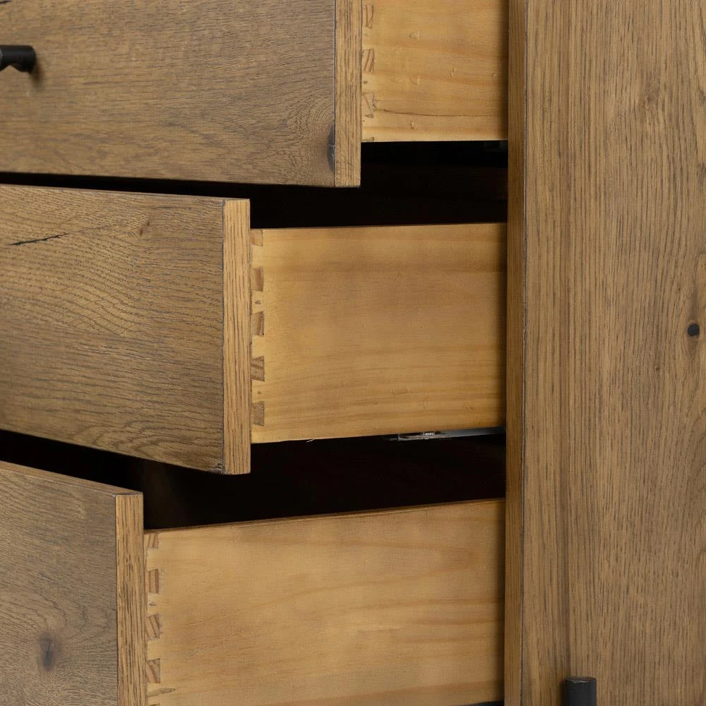 • Alina Rustic Lodge Brown Wood Dark Grey Iron 5 Drawer Tall Chest Dresser|Kathy Kuo Home