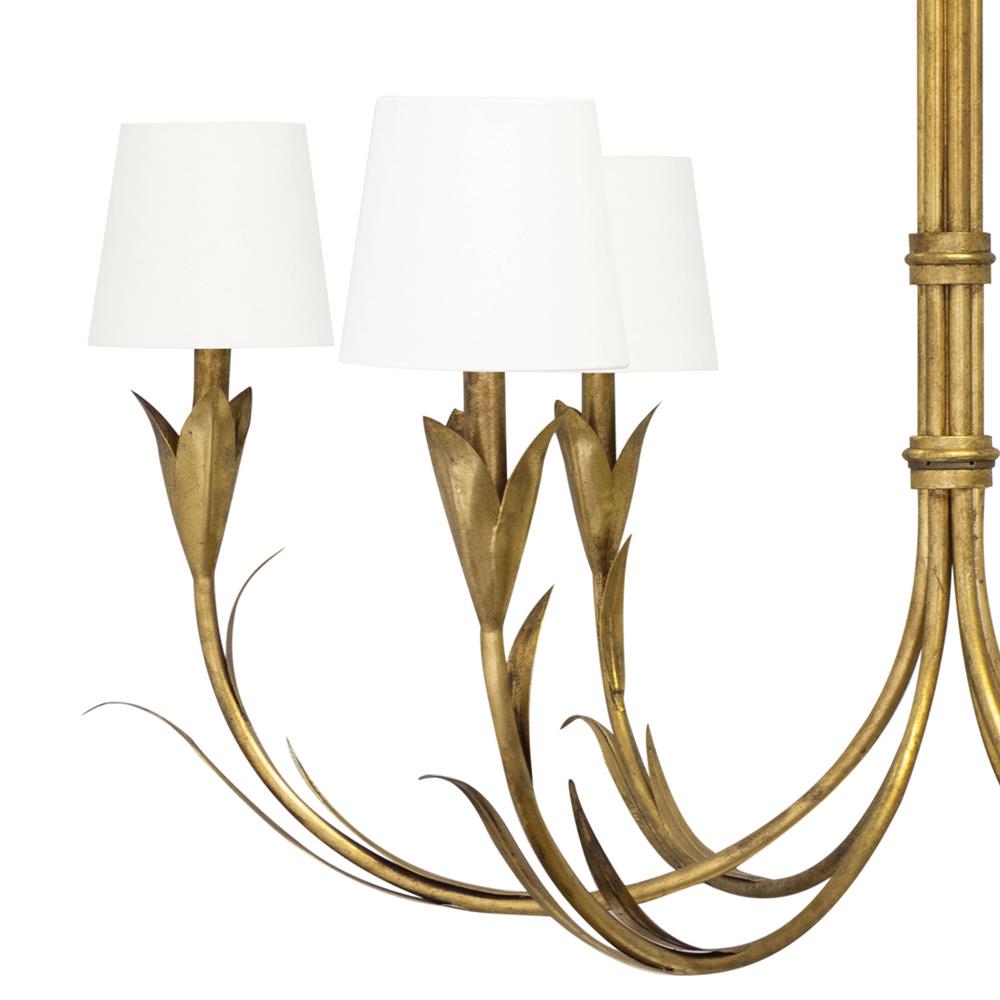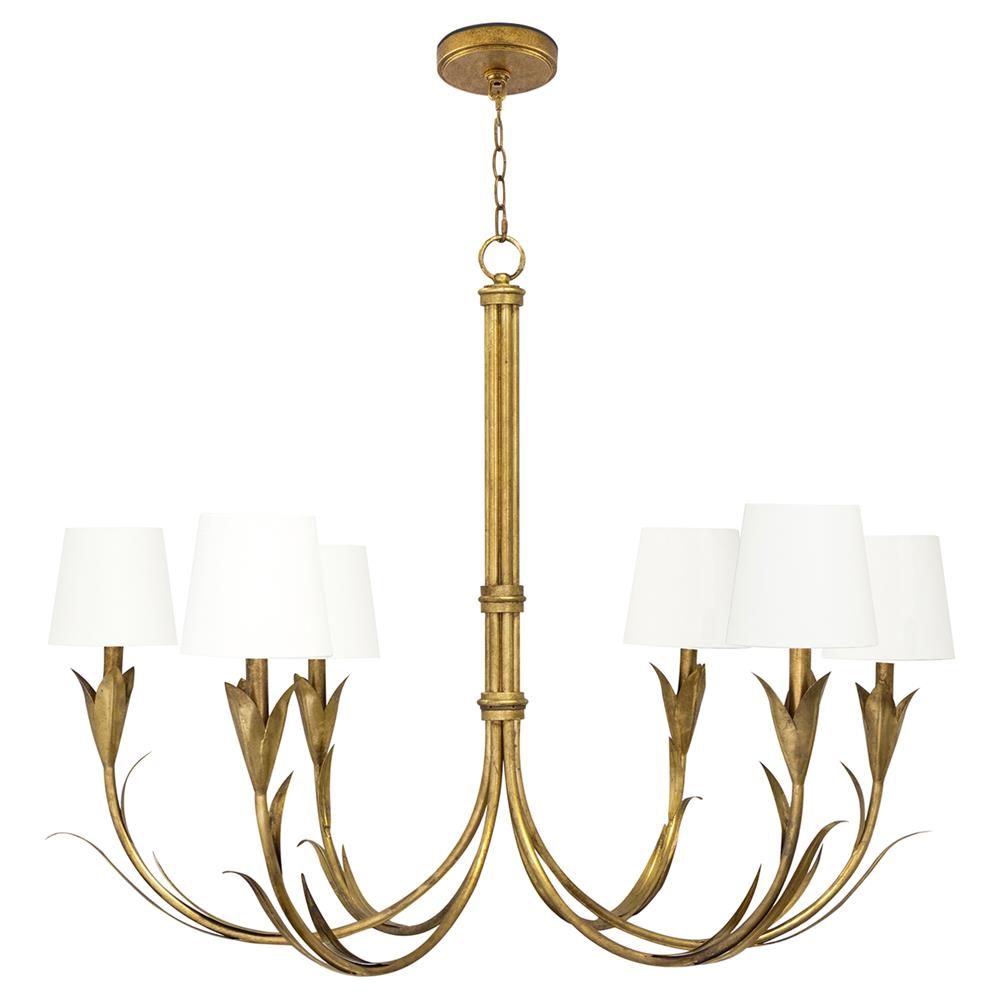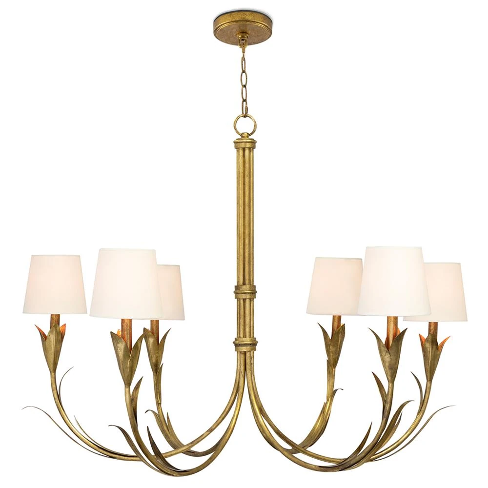 River Reed French Antique Gold Leaf Steel Linen Shade Chandelier