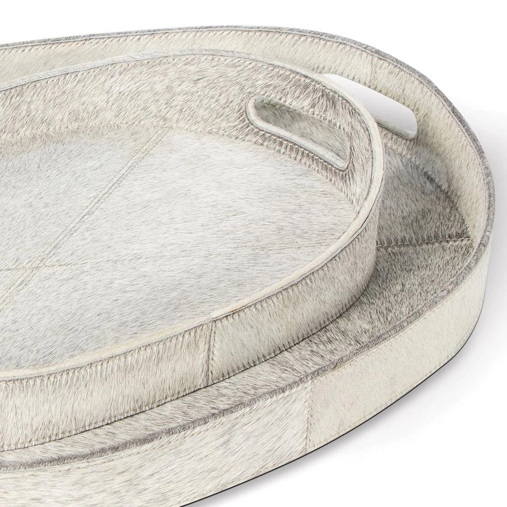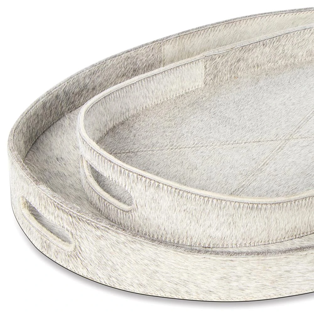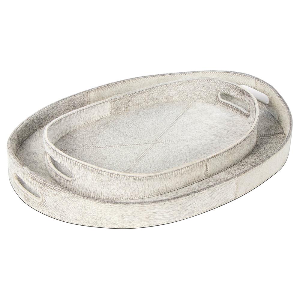 Andres Modern Grey Hair on Hide Decorative Tray - Set of 2