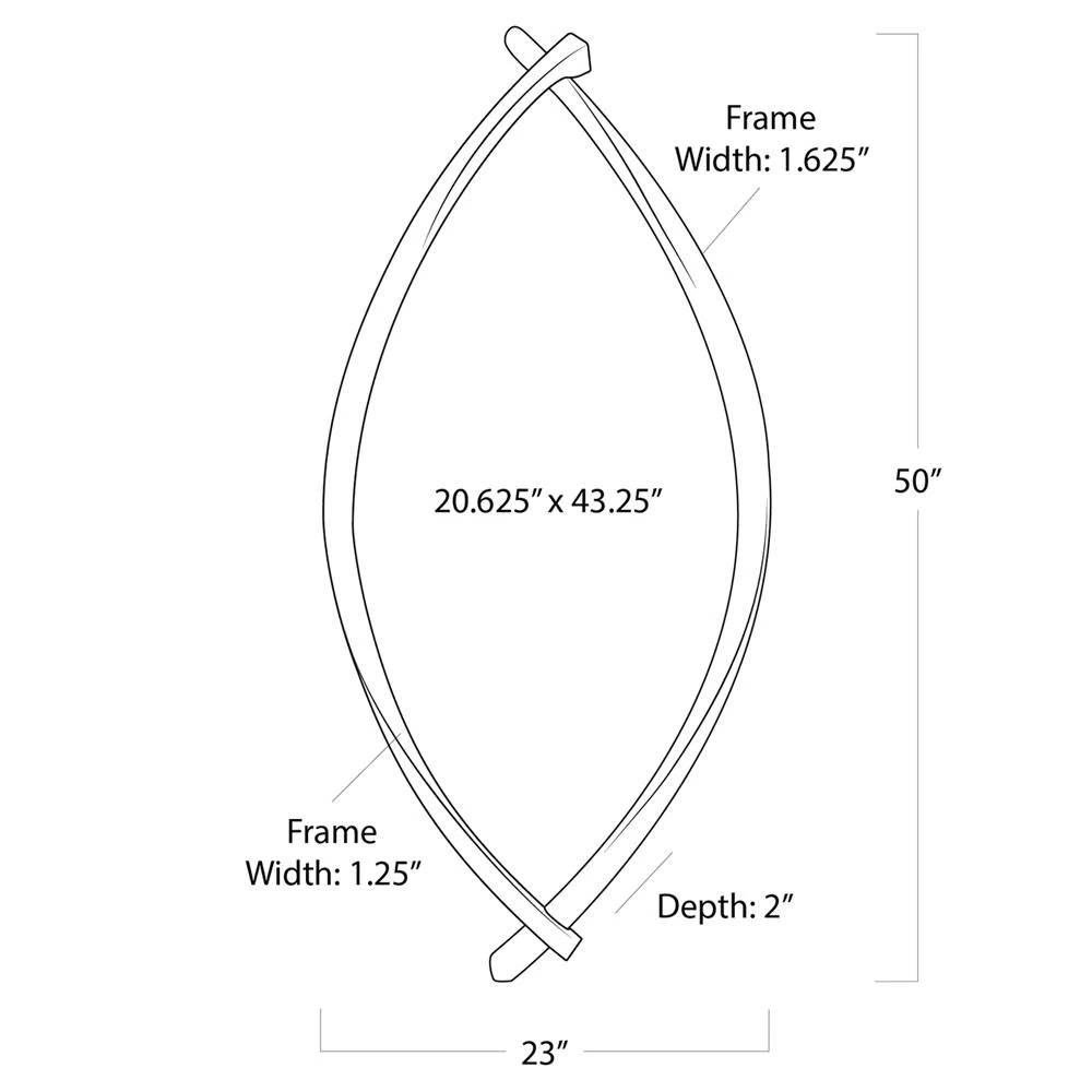 • Frame top: 1.62 inches wide; Frame bottom: 1.25 inches wide; Mirror: 43.25 inches high x 20.62 inches wide