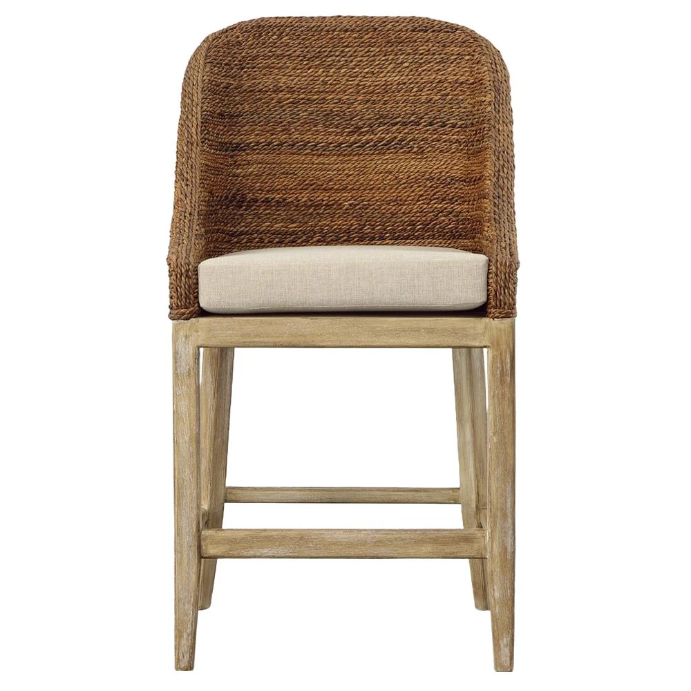 A solid oak wood frame and woven banana leaf back give the Larissa counter stool its coastal beach aesthetic. Natural wood grain and pa ... more
