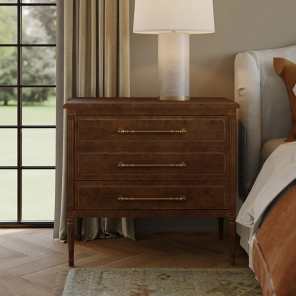 Vance French Country Brown Oak Wood 3 Drawer Bachelor Chest
