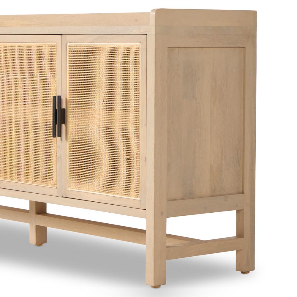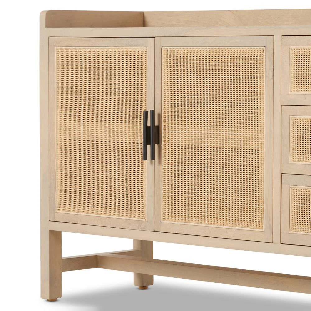 Corazon Coastal Beach Natural Mango Wood Frame Woven Cane 4 Door Sideboard