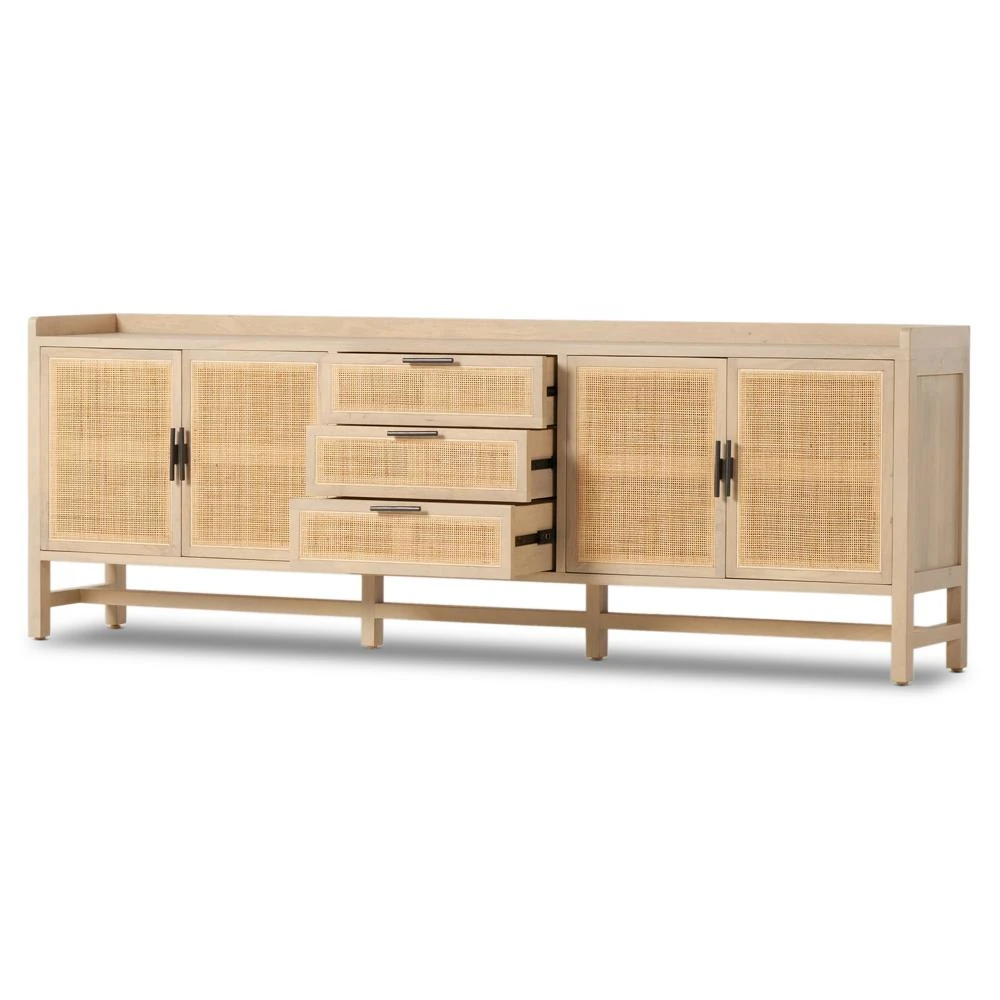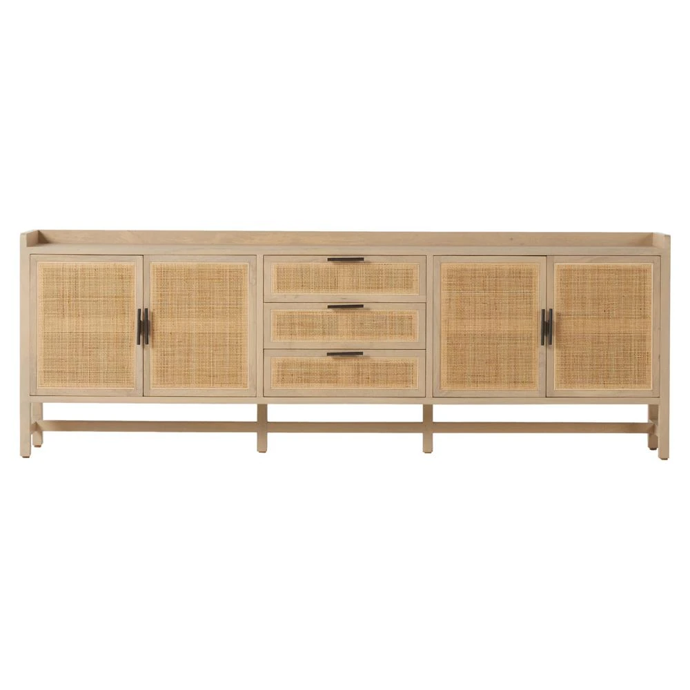 • Alarisse Coastal Beach Vanilla Oak Woven Cane Sideboard|Kathy Kuo Home