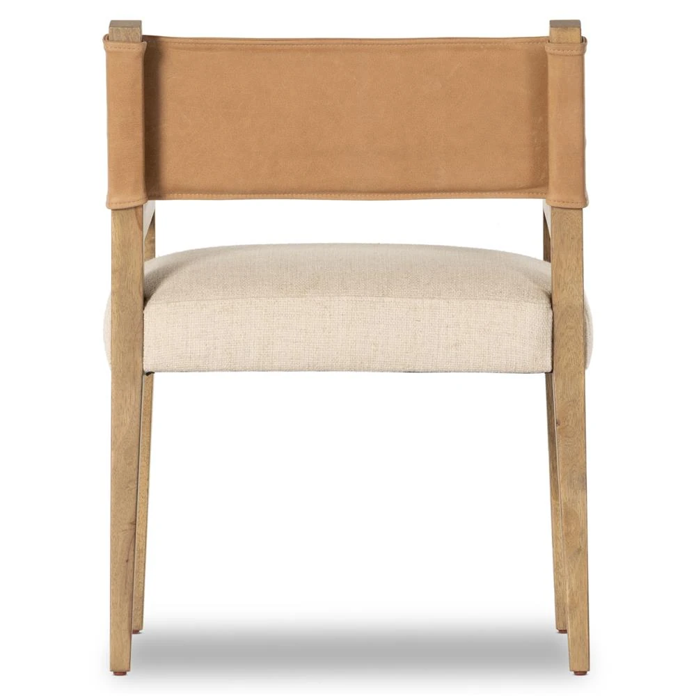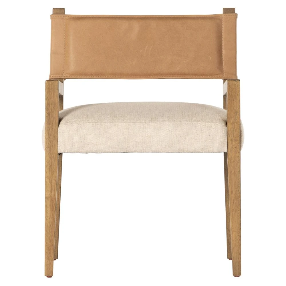 Ely Rustic Cream Performance Seat Beige Wood Leather Dining Arm Chair