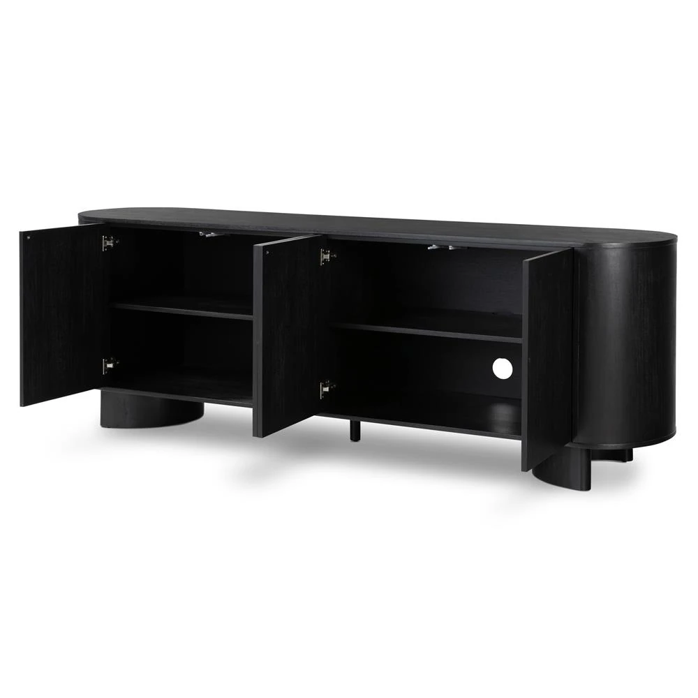 Expertly crafted from acacia and beautifully finished in aged black, the Paris sideboard features an oval-shaped silhouette with sculpt ... more