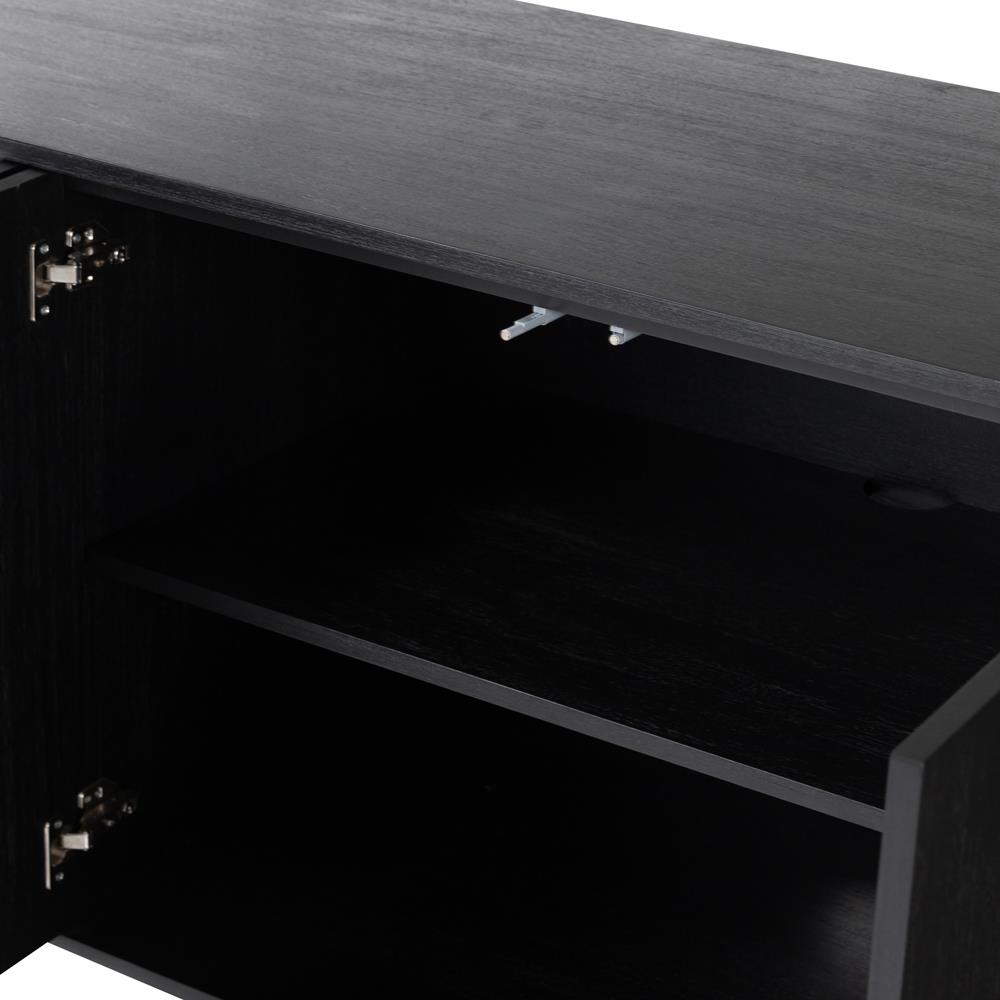 Paris Rustic Lodge Black Solid Acacia Wood 4 Door Oval Sideboard