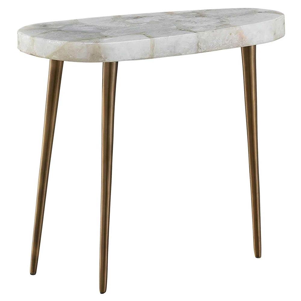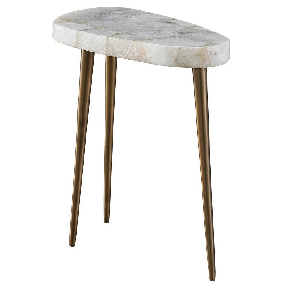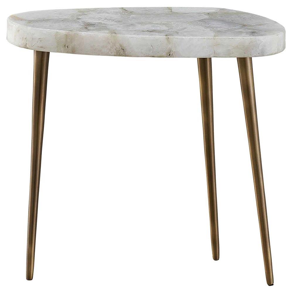 Ethan Modern Classic White Stone Top Antique Brass Metal Side Table - Short