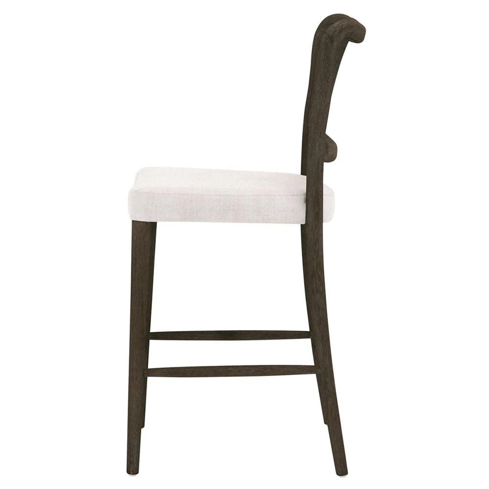 • Tobin Updated Traditional Off White Upholstered Brown Wood Counter Stool|Kathy Kuo Home