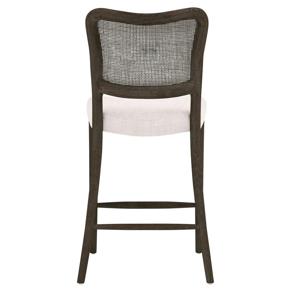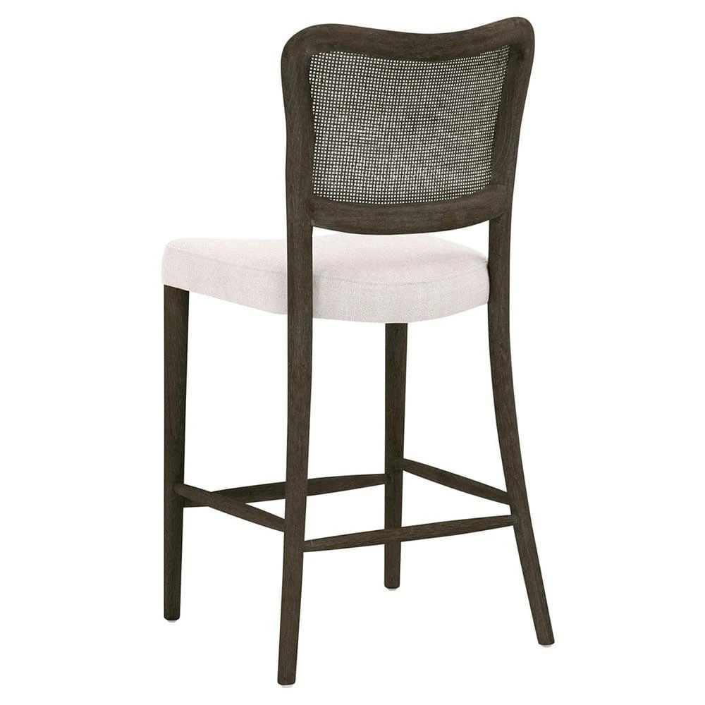 Edward Coastal White Linen Driftwood Mahogany Woven Cane Counter Stool