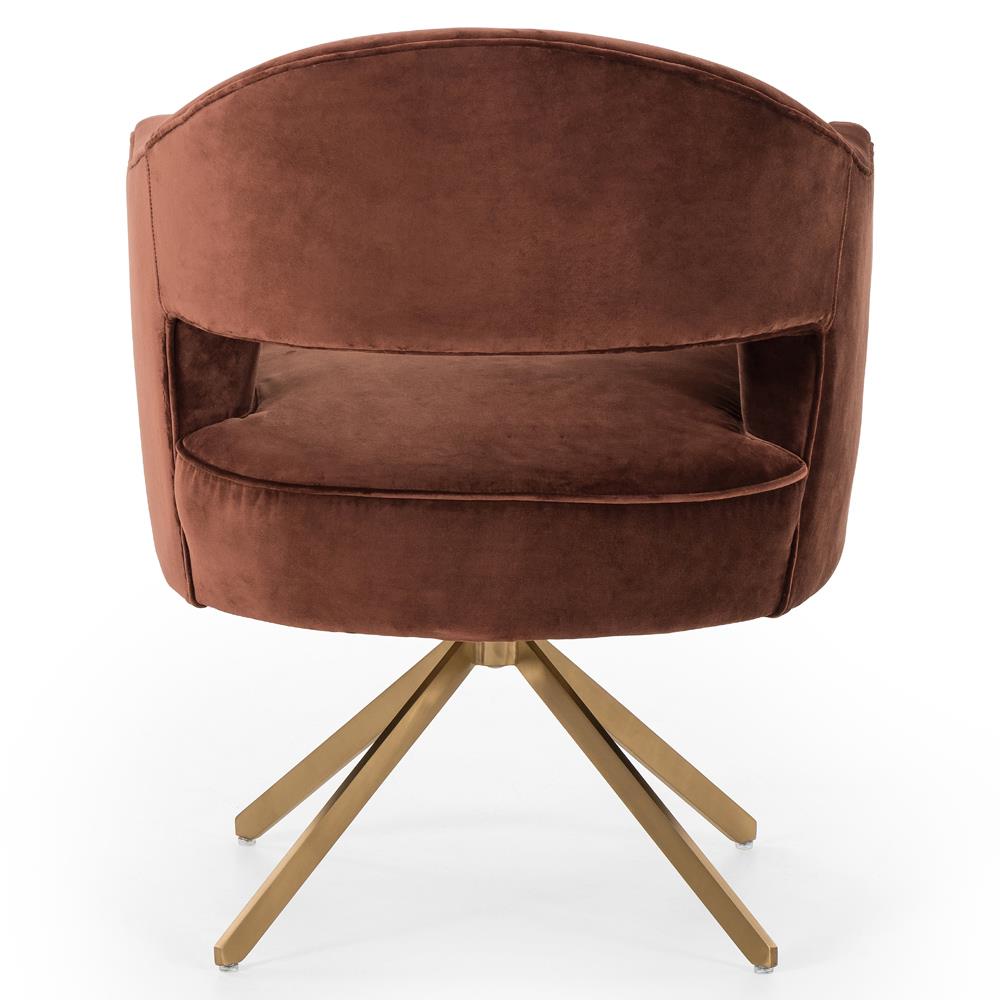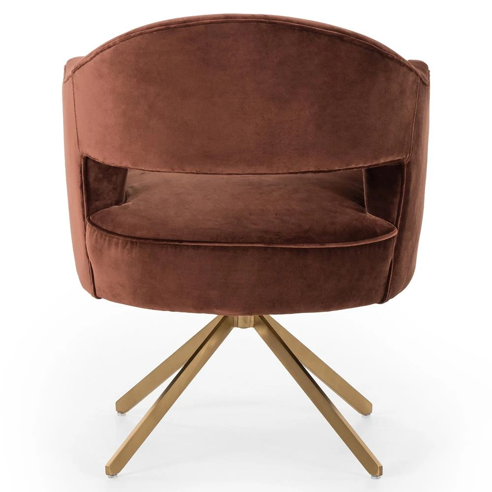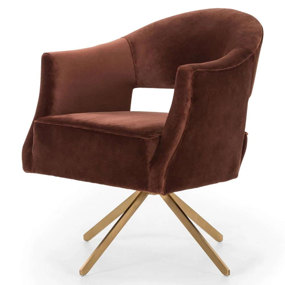 Alexis Modern Classic Auburn Velvet Polished Brass Swivel Desk Chair