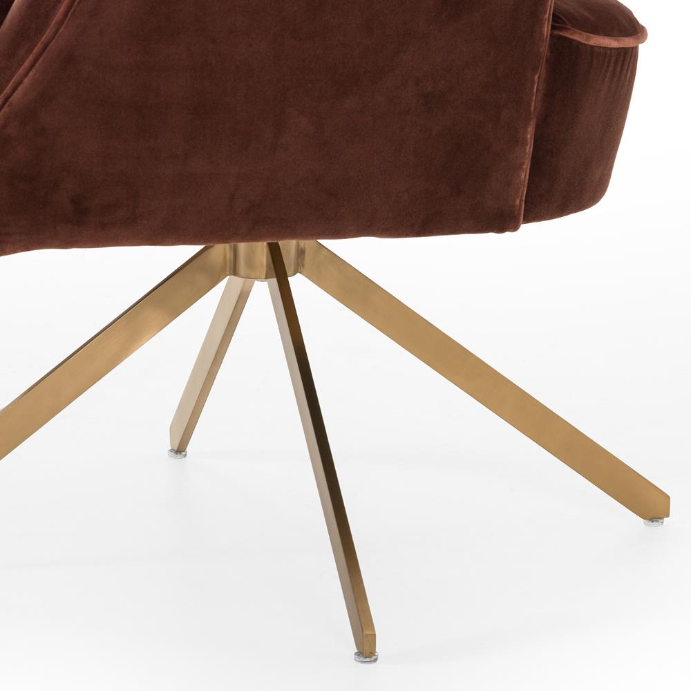 Sonn Mid Century Auburn Brown Upholstered Velvet Silver Stainless Steel Office Chair