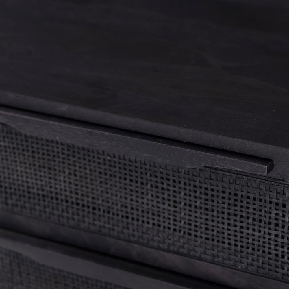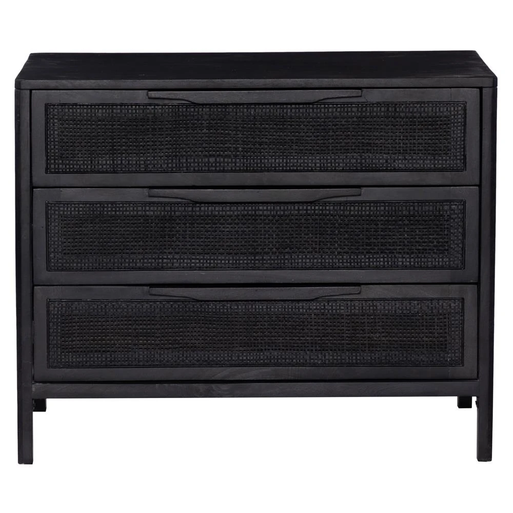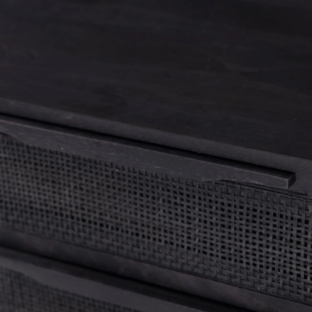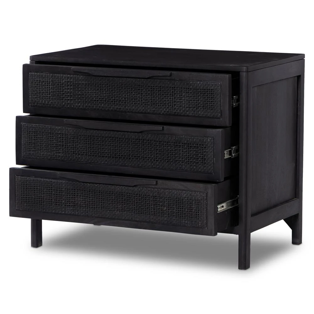 Rhian Coastal Beach Black Mango Wood Black Woven Cane 3 Drawer Nightstand