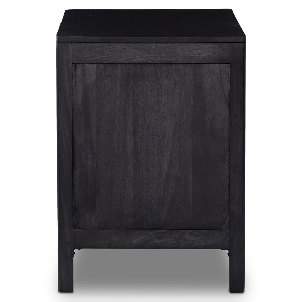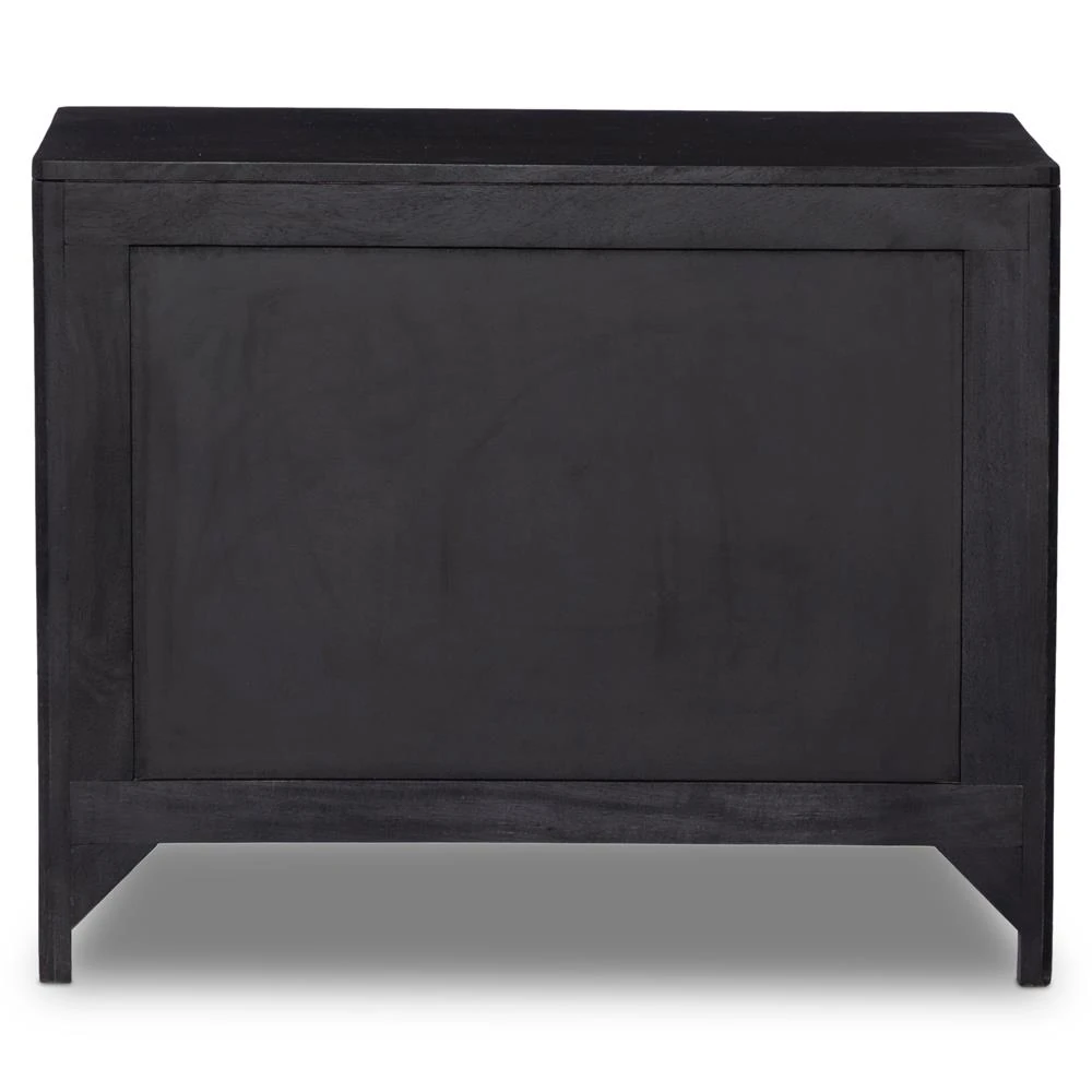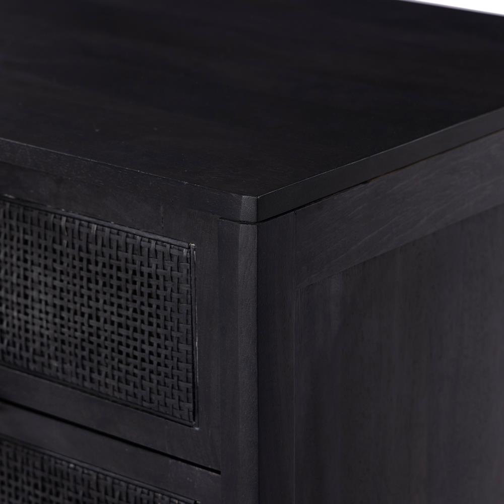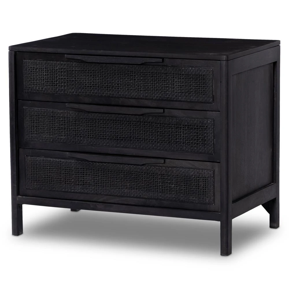 Rhian Coastal Beach Black Mango Wood Black Woven Cane 3 Drawer Nightstand
