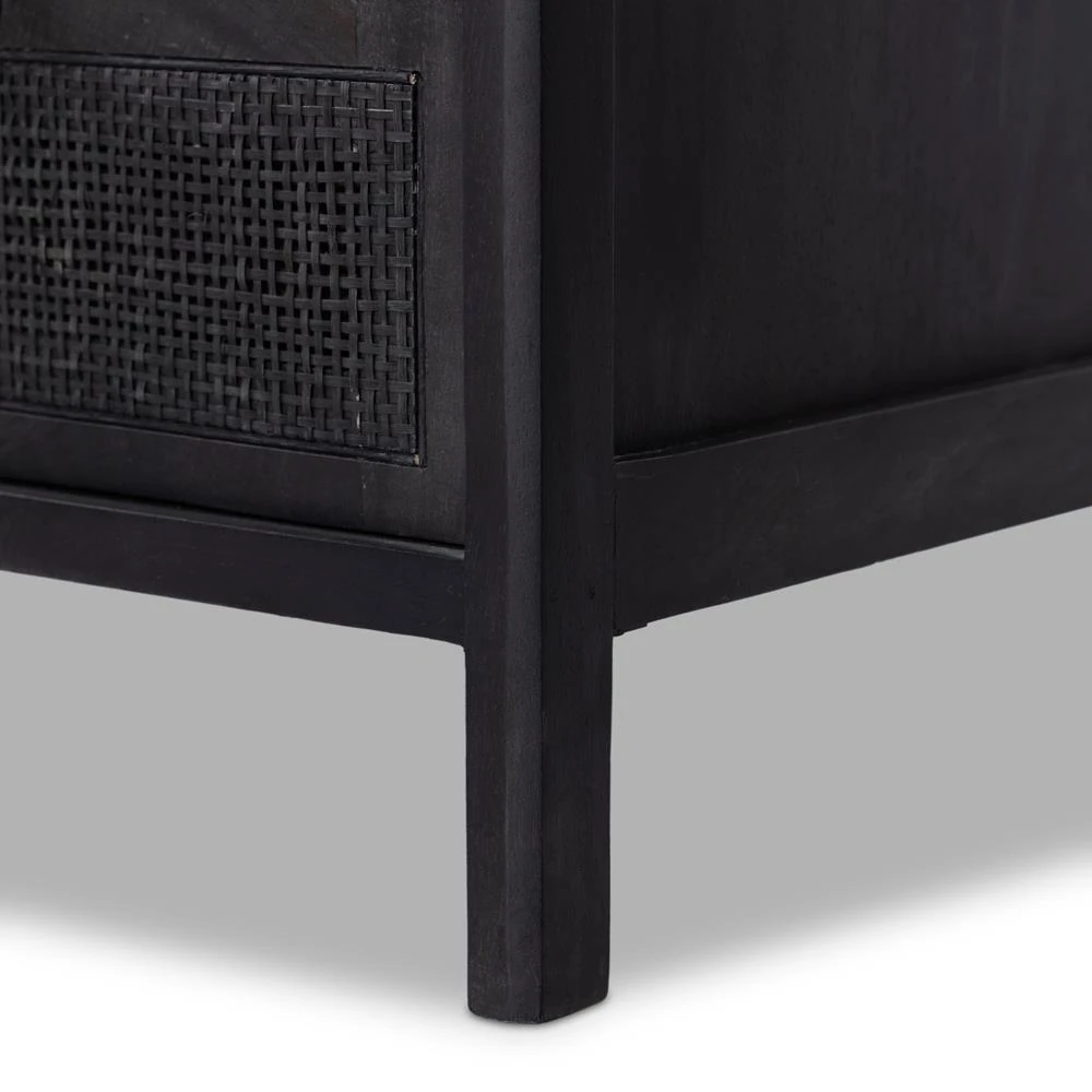 Marina Coastal Beach Black Solid Mango Wood Woven Cane Sideboard