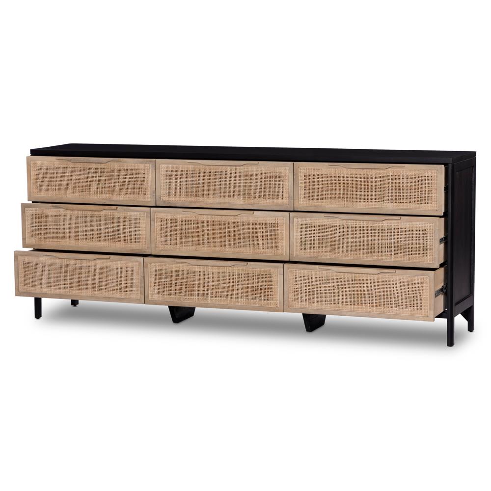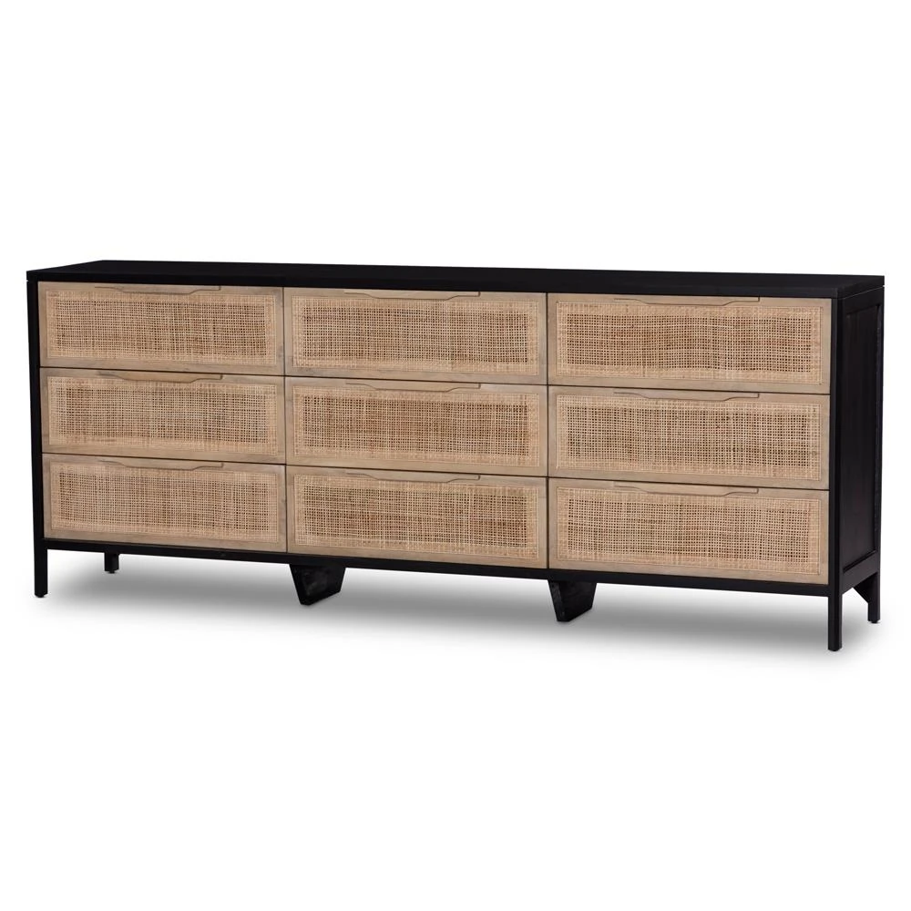 Rhian Coastal Natural Woven Cane Black Mango Wood 9 Drawer Dresser