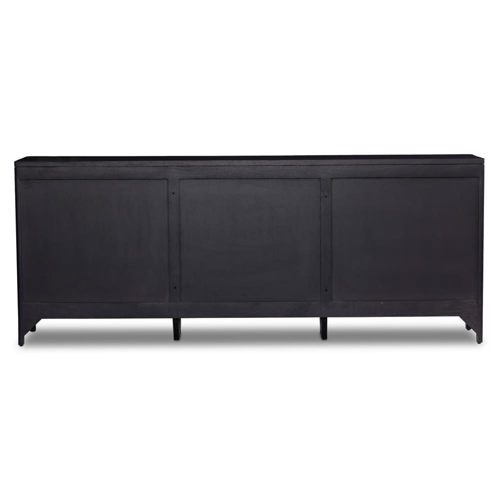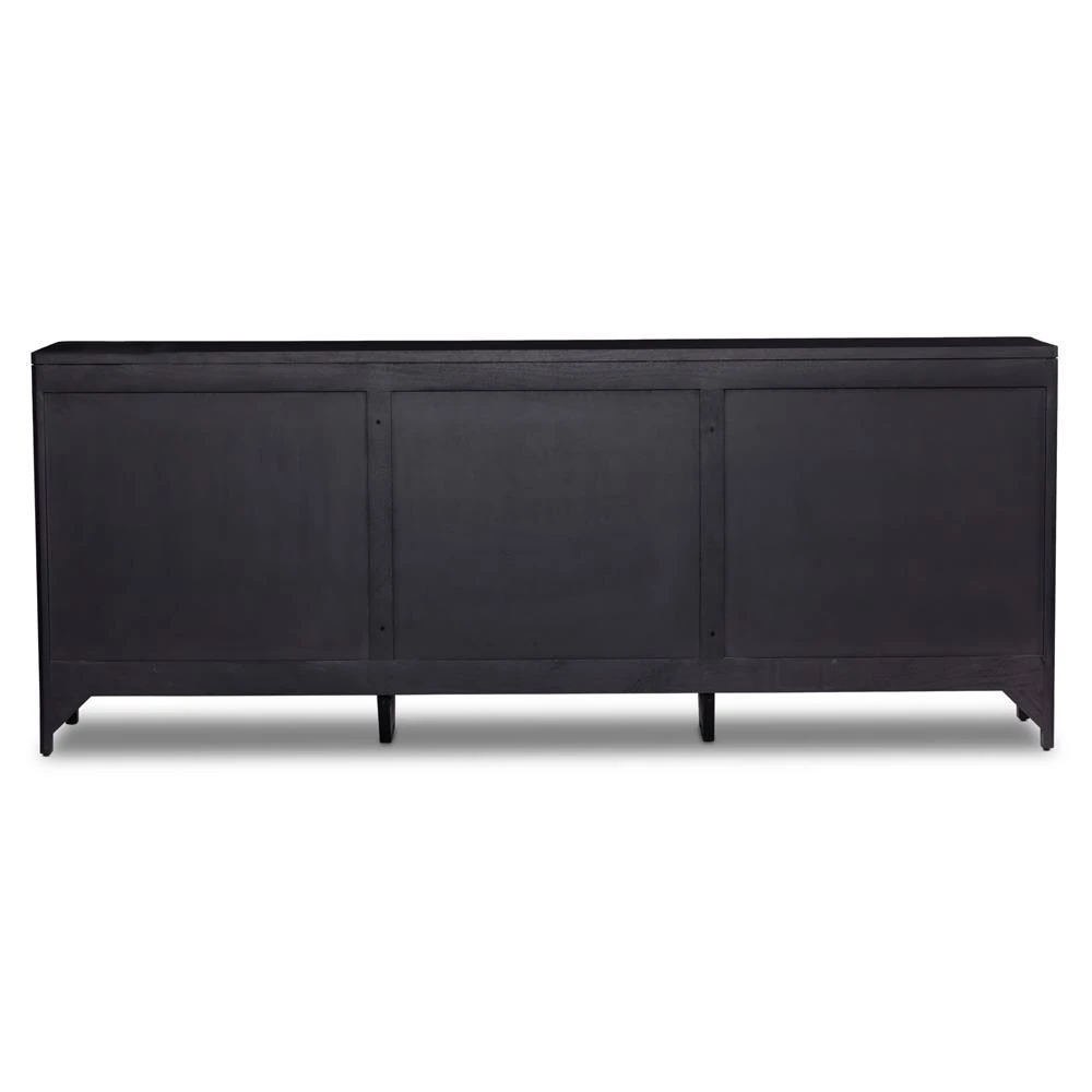 • Clarence Rustic Lodge Matte Black Oak Wood Clear Glass 3 Door Sideboard|Kathy Kuo Home