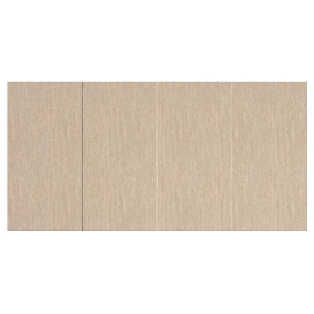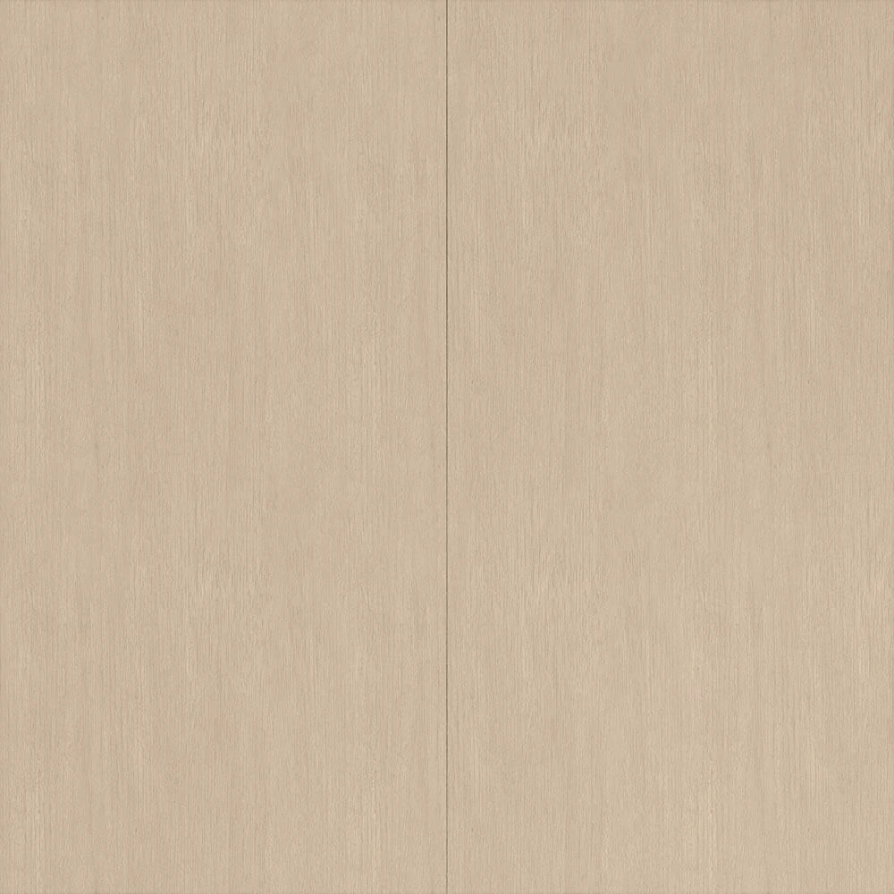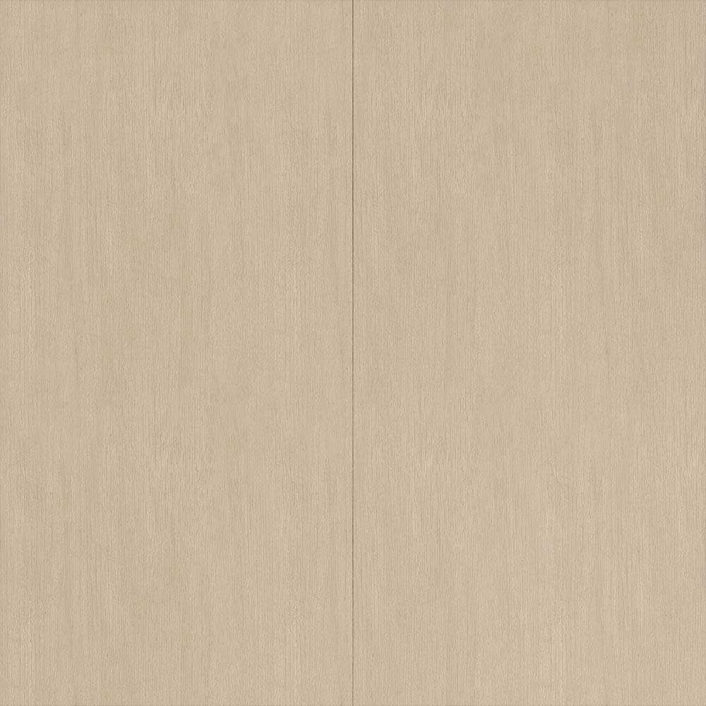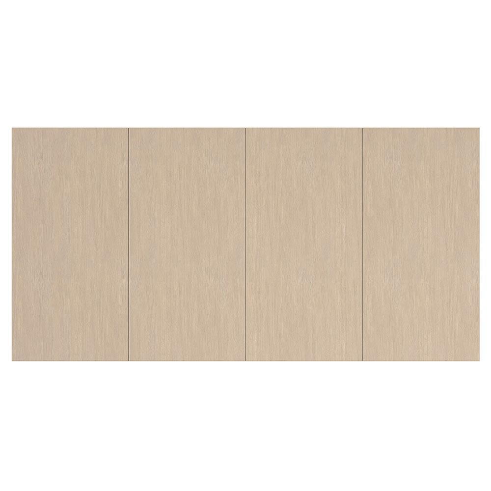 • When extended, center leg is open pore travertine, outer legs are inset fluted wood in sun drenched oak